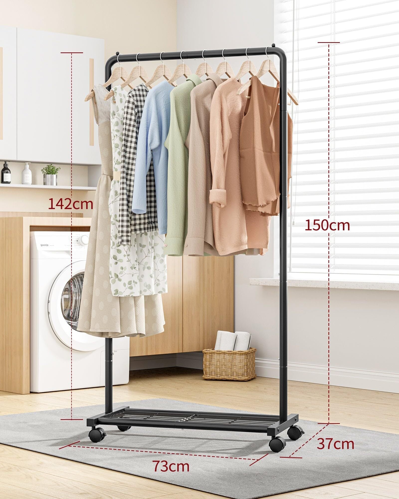 幅広い用途:Sakugiハンガーラックは、コンパクトなサイズ(幅73×奥行37×高さ150cm)で、寝室、クローゼット、ランドリールーム、オフィスなど、さまざまな場所に最適です。限られたスペースを有効に活用し、衣類の収納に実用的なスペースを提供します。
