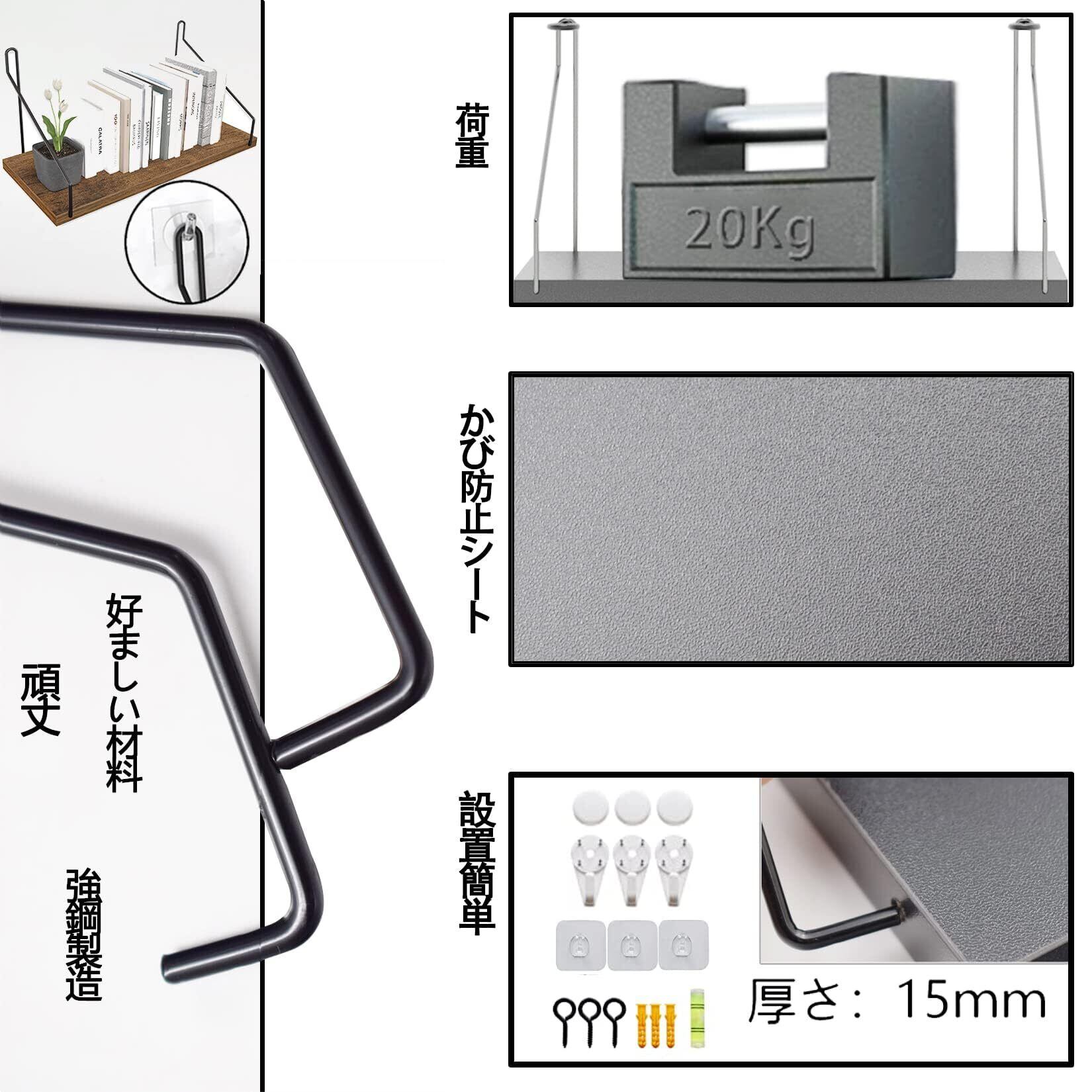 【3つの設置方法で便利】粘着フック、無痕ネジ、金属ロックネジの3種類の取り付け方法を選べます。どんな壁にも対応でき、設置が簡単。賃貸でも安心してご利用いただけます。(壁に付ける棚、ウォールシェルフ 賃貸、壁 収納、棚 壁掛け、壁 ラック)