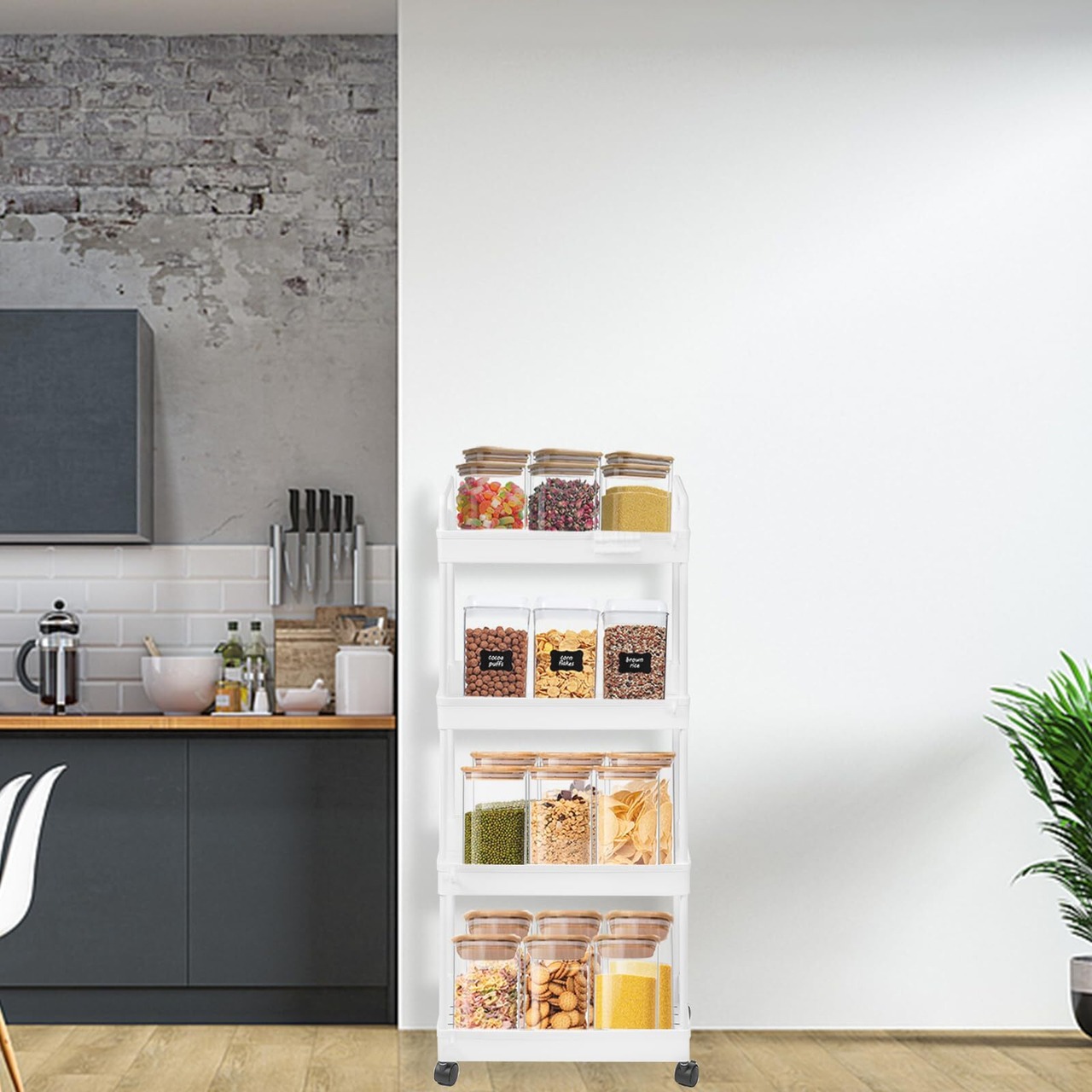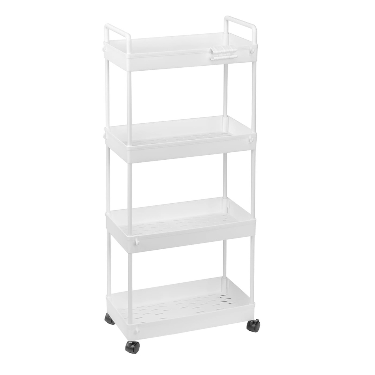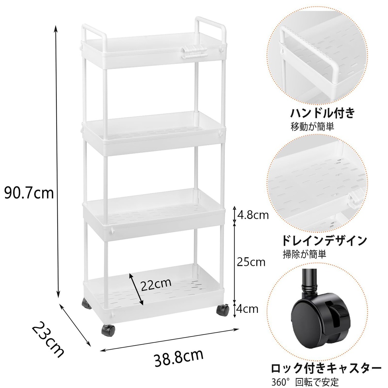キッチンワゴン キャスター付き 隙間収納 23cm ワゴン スリム 4段 洗面所 収納 ハンドル2個付き ペットボトル 調味料 小物 スリムラック キッチン 洗面台 トイレ バスルーム 冷蔵庫横 ホワイト