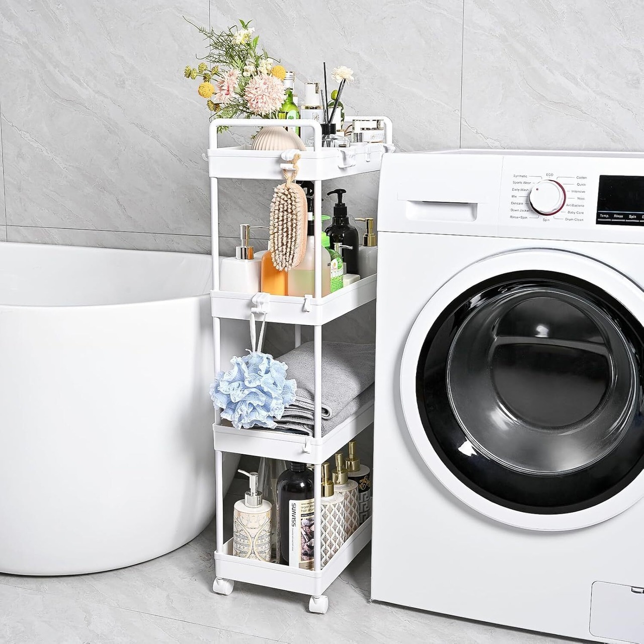 【狭いスペース用収納ワゴン】TATIU隙間収納は、狭いスペースを整理するのに最適です。360度回転するキャスター付きで、家中どこにでも移動して収納できます。オフィス、キッチン、バスルーム、トイレ、ランドリールーム、狭い場所などの収納にフレキシブルに使用できます(壁や隙間に寄りかからない場合、安定性を高めるために、洗剤などの重いものを下に置くことをオススメいたします)。