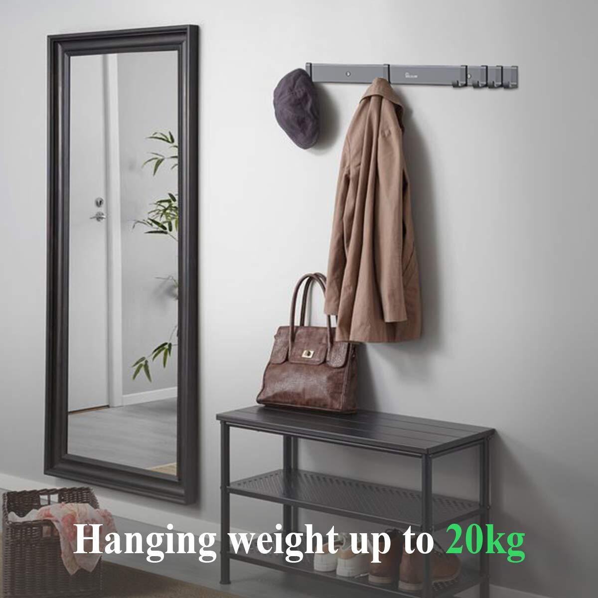 ウォールハンガー 壁取り付け式コートラック 6連フック 壁掛けフック 収納家具 物干しハンガー 帽子掛け・洋服掛け・コート掛け アルミニウム合金製(フック移動型)
