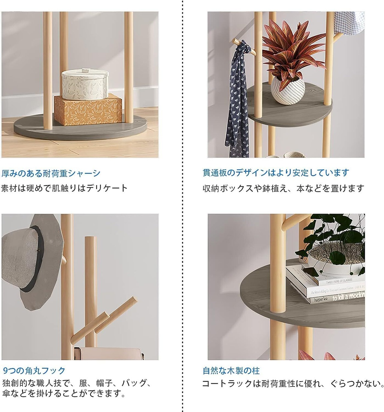 ポールハンガー コート掛け ハンガーポール コートハンガー ユーティリティラック かばんかけ 木製 大容量収納ラック 省スペース 倒れにくい (グレー) [並行輸入品]