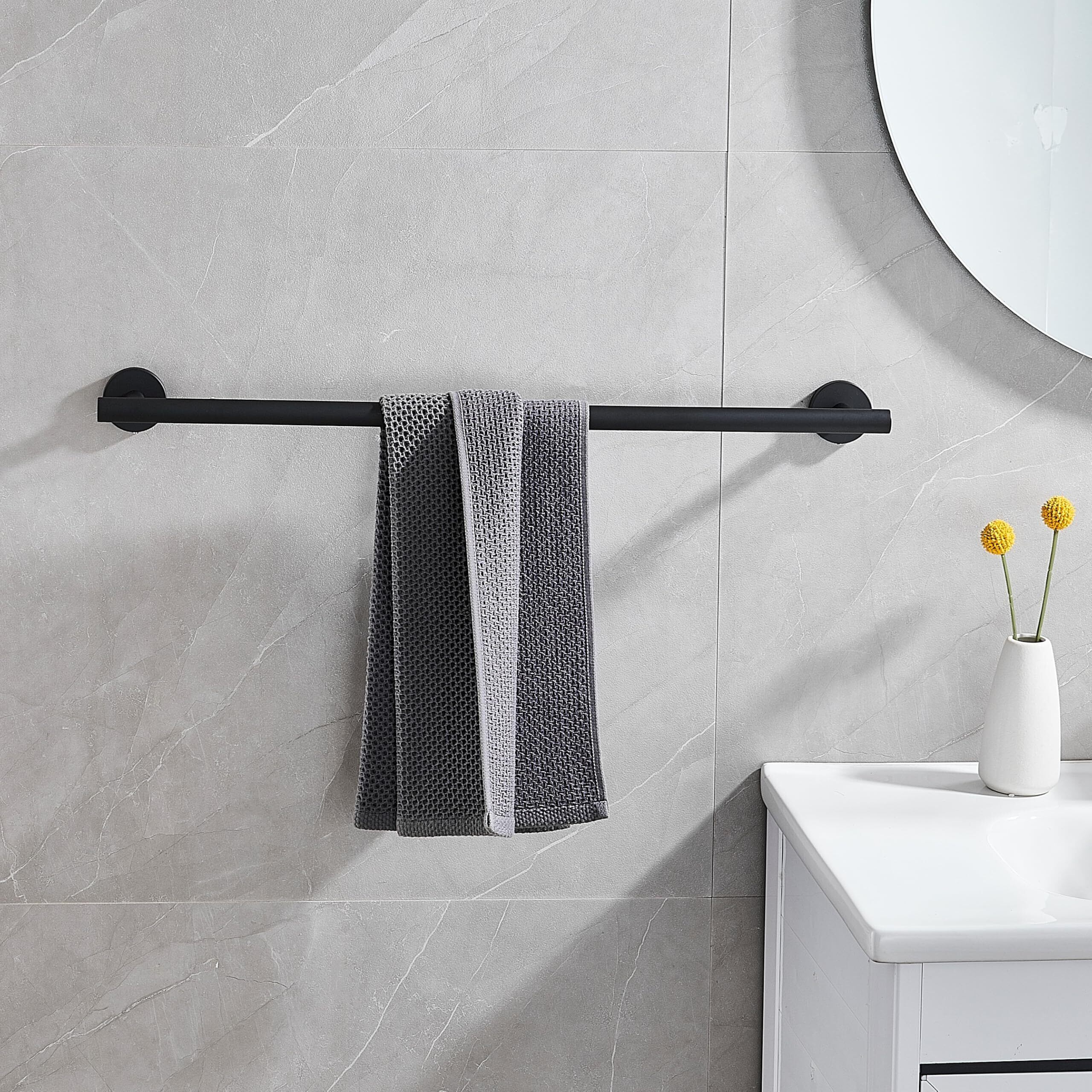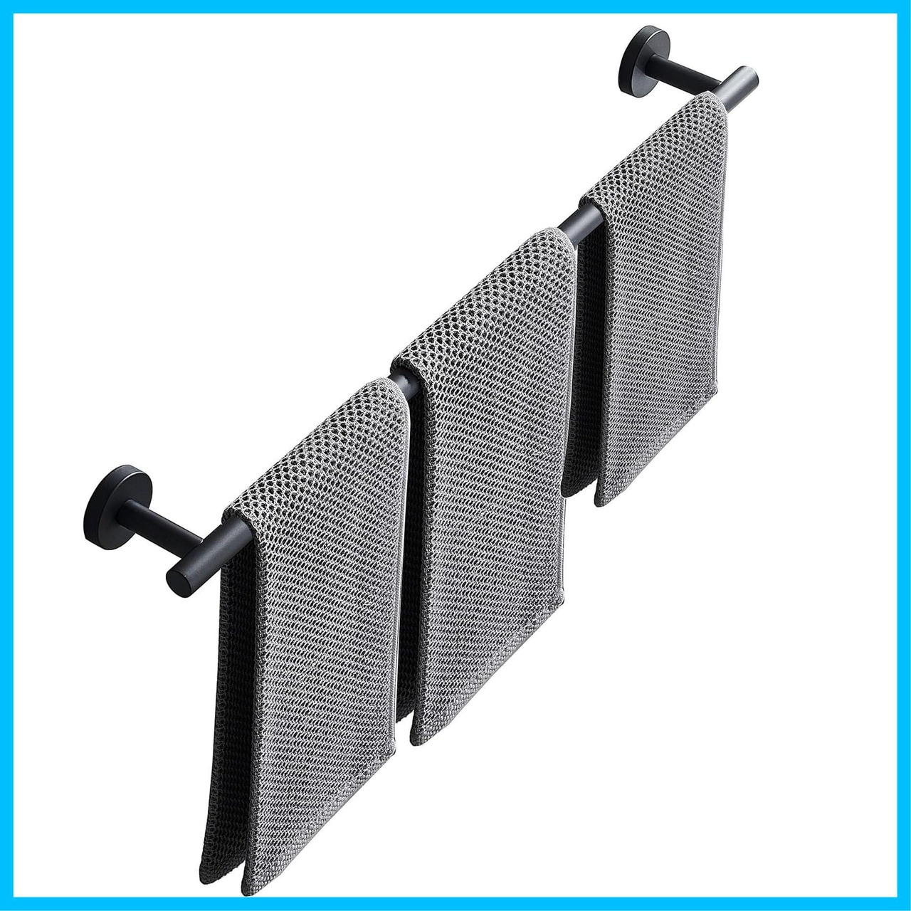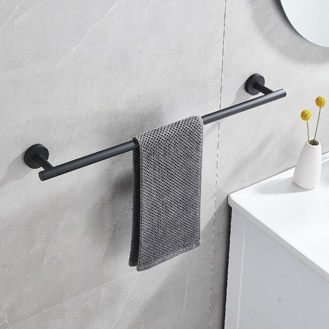 【新着商品】KWQKEMタオルバー ステンレス丸座 タオル掛け おしゃれ タオルハンガー アイアンバ ー 壁掛け ネジ付き タオルホルダートイレ 浴室 バスルームアクセサリー キッチン用 省スペース (ブラック, タオルバー60cm)