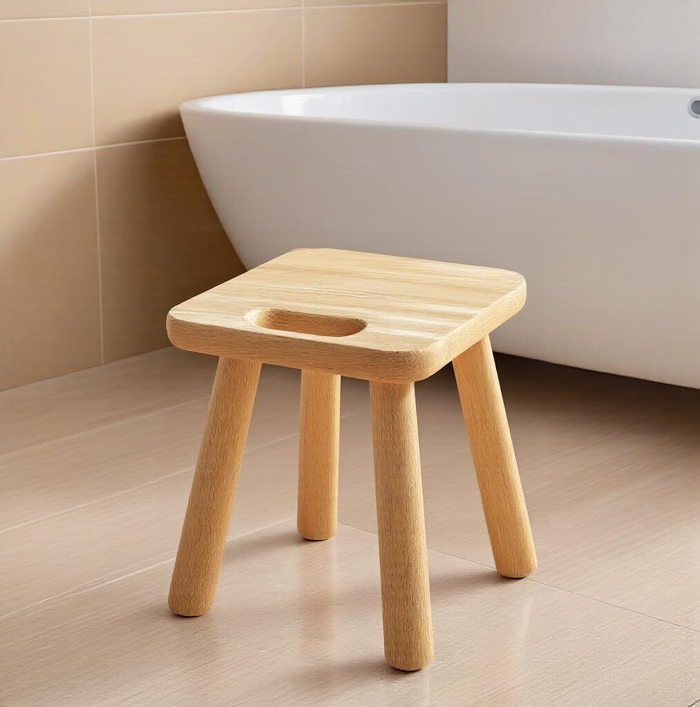 【数量限定】Pinyunxuan室内の小さい木のいす、方形の取っ手の椅子、室内の植物の棚の小さい辺机、寝室のベッドの頭あるいはバスルームの子供の足を踏むいす(木の色、24cm)