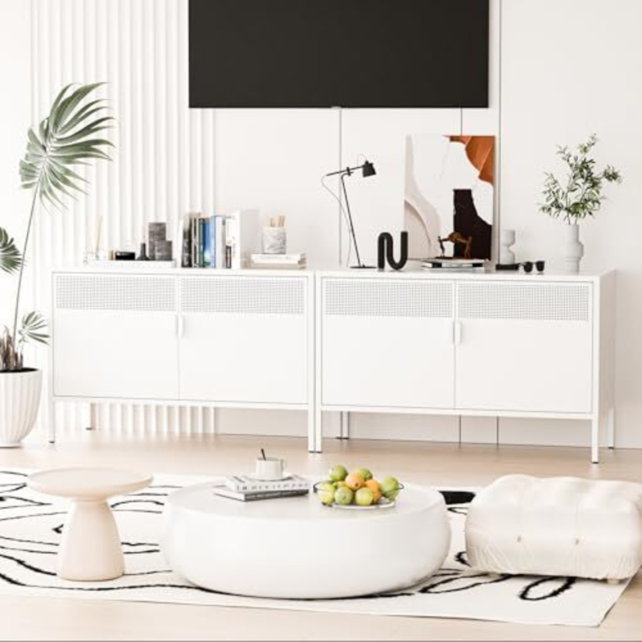 【特価セール】キャビネット 鋼製 サイドボード 扉付き リビング 収納 棚 観音開き 調節可能な棚付き 通気孔付き おしゃれ リビングルーム、ダイニングルーム、寝室に適用 組立品 高64cm (ホワイト)