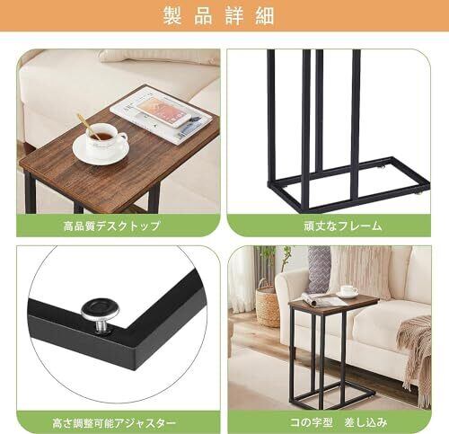 VECELO サイドテーブル ソファサイドテーブル ベッドサイドテーブル 2点セット ブラウン コの字型 差し込み ソファ横 ベッド脇 北欧 おしゃれ シンプル 幅48×奥行き28×高さ60cm