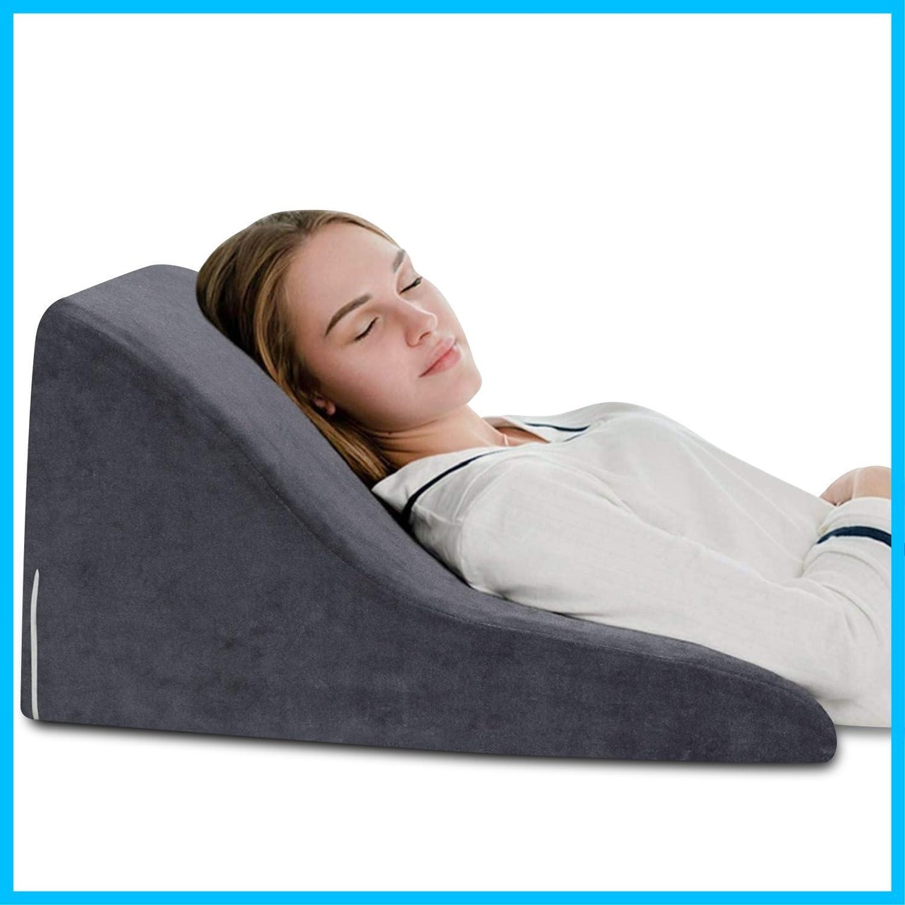 AngQi 三角クッション 三角枕 腰枕 逆流性食道炎 枕 背もたれ クッション なだらか 傾斜枕 ベルボア生地 体にフィット 腰クッション 読書用 妊婦用 お年寄り 老人用 グレー