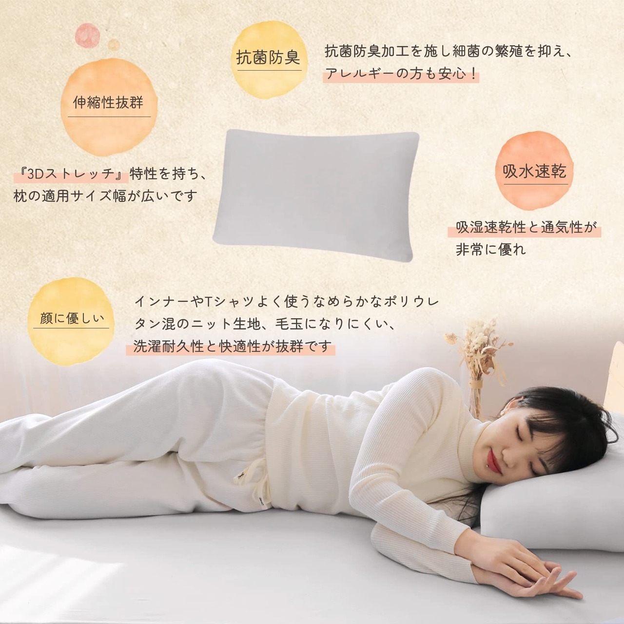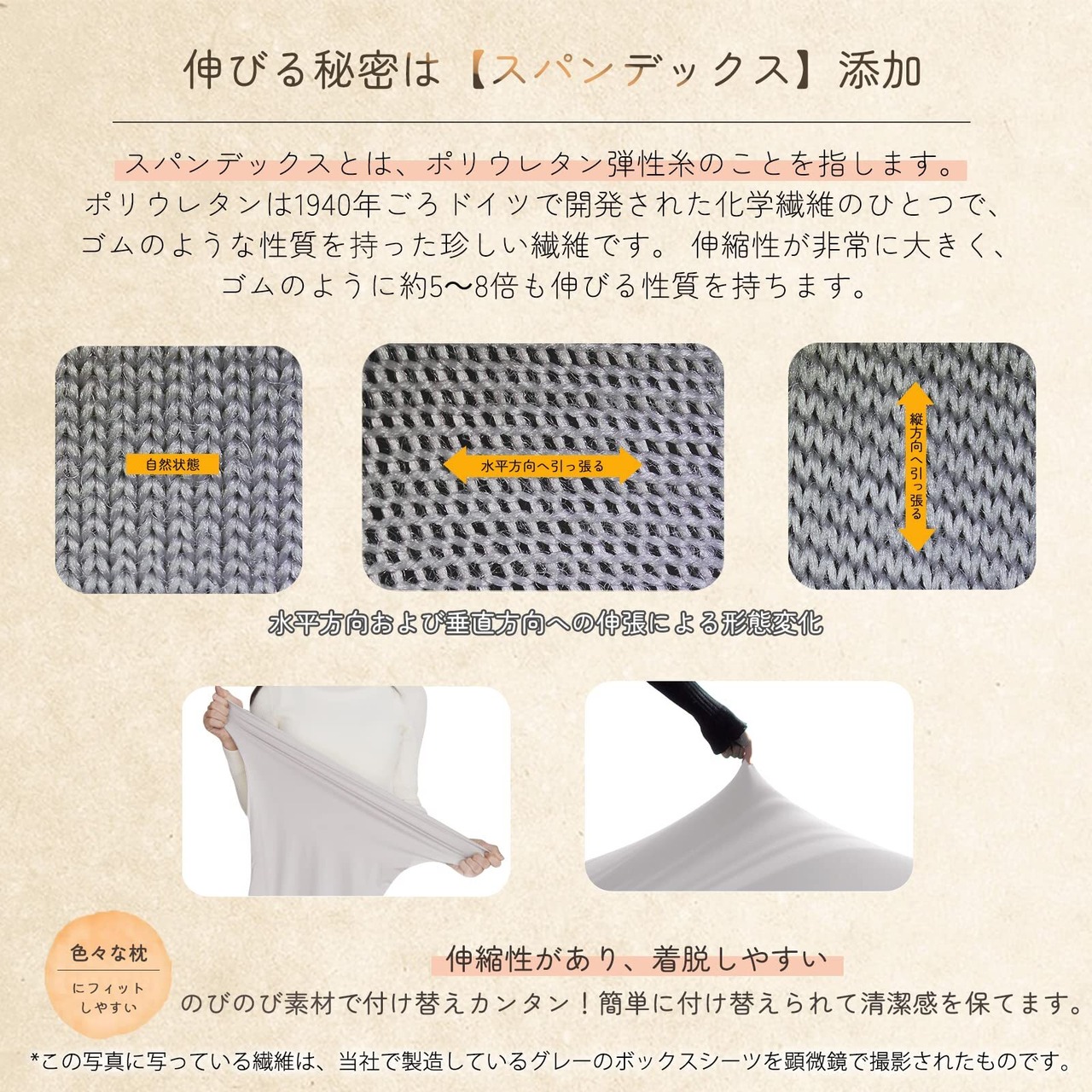 【伸縮性抜群・各形各サイズの枕適用】『3Dストレッチ』特性を持ち、タテにもヨコにも伸びるので、枕の適用サイズ幅が広いです。アイロンせずシワ一つもない、きれいな枕に変身できるのびのび枕カバーです。