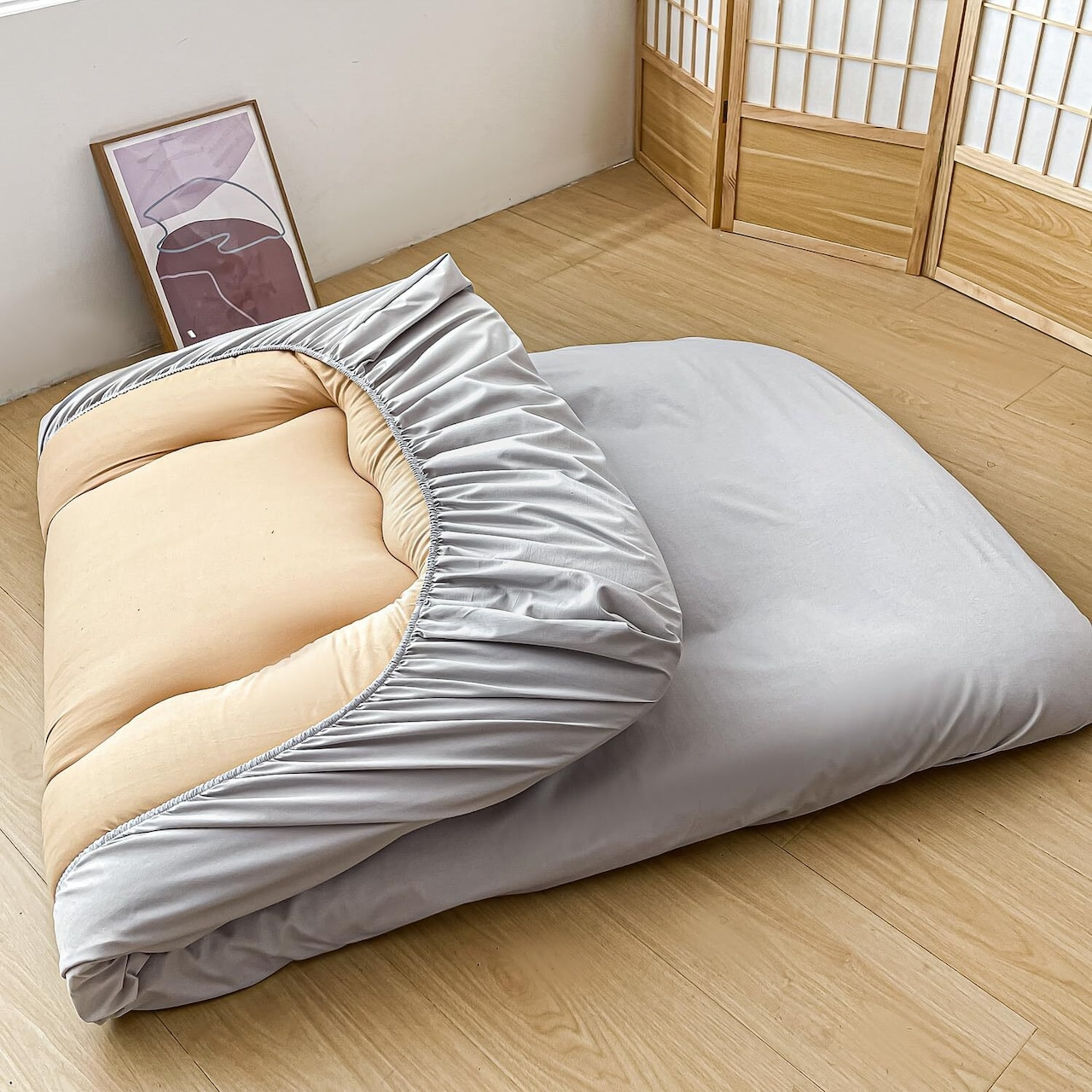 【サイズ】シングル:約105x215㎝×厚み最大20cm対応 、敷き布団(100x210cm)に適用です。(裏側はズレにくい全周ゴム仕様で着脱も簡単です)