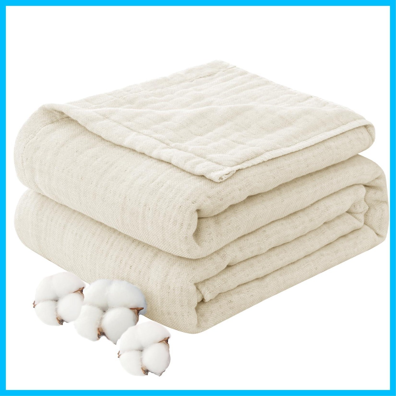 fuwawa ガーゼケット シングル 6重織り 天然綿100% 吸湿 通気 綿 お昼寝ケット 肌掛け やわらか 夏快眠 肌に優しい 年中快適 丸洗いOK 抗菌・防臭・防ダニ 洗える 軽量 リバーシブル 冷房対策 ガーゼけっと 140x190cm (無地,アイボリー)