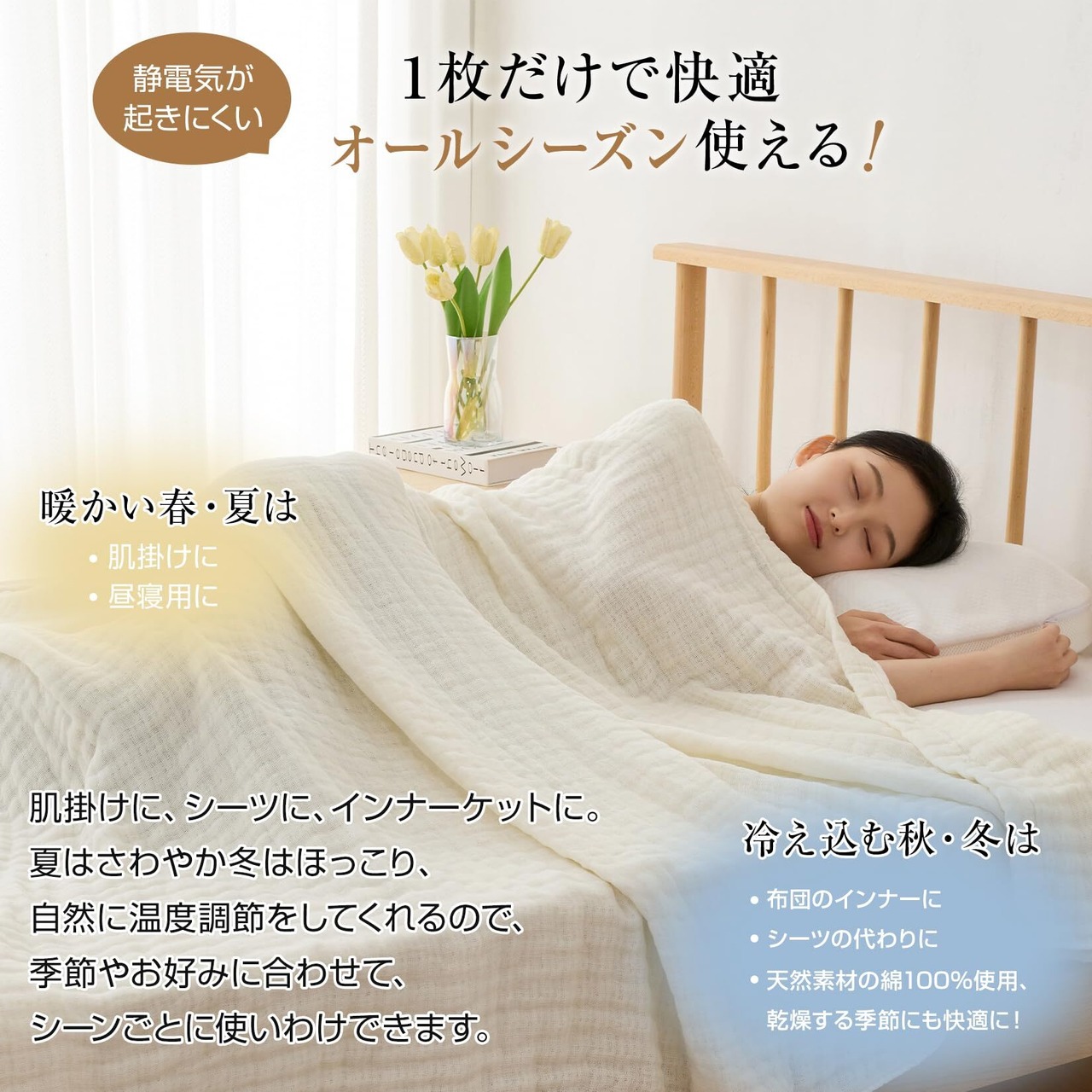 【オールシーズン使える】夏は通気性が良く、サラッとした肌触りに、冬は保温性を高めるので毛布がわりに、一年を通して快適にお過ごしいただけます。季節やお好みに合わせて、シーンごとに使いわけできます。