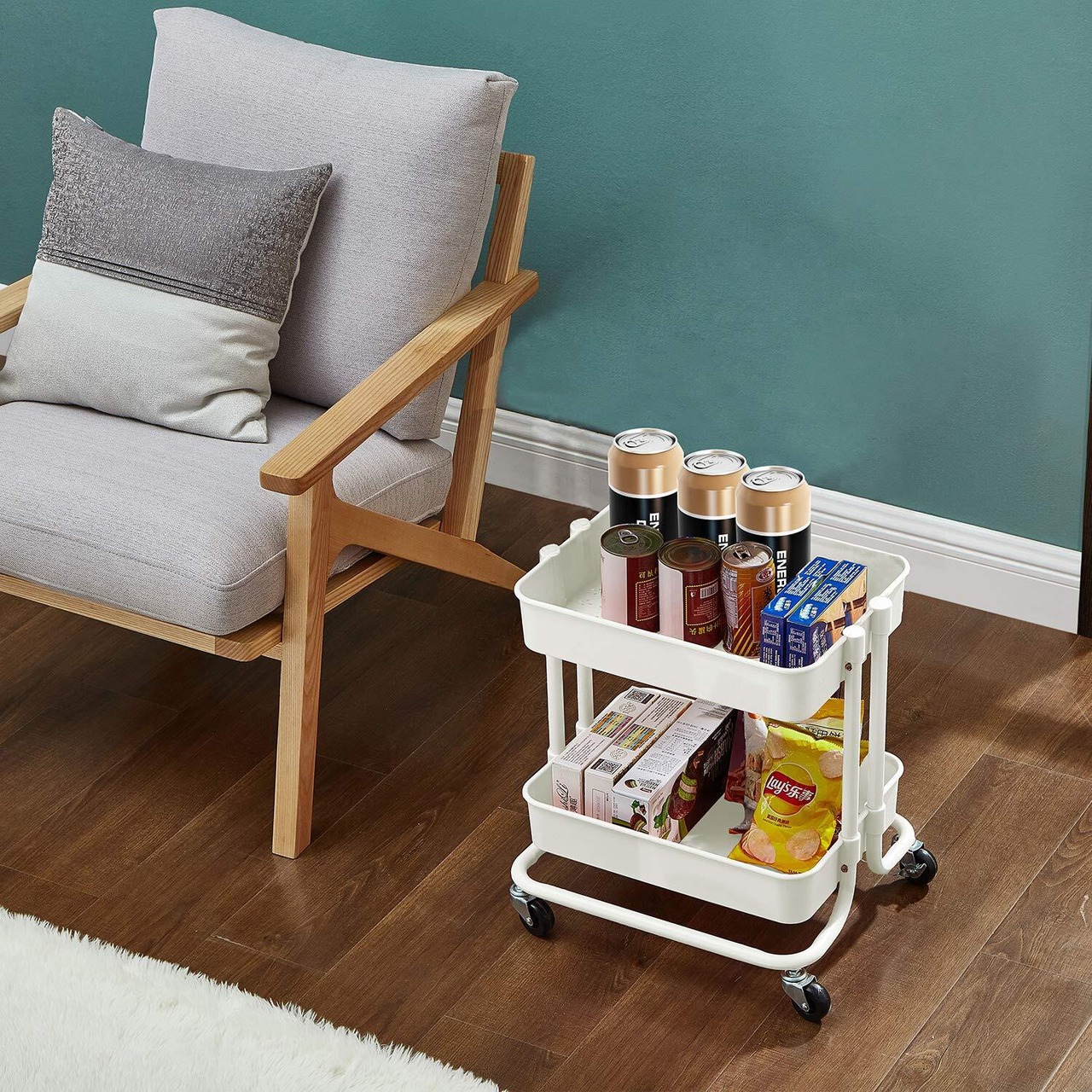 【静音&移動便利】キャスター付きキッチンワゴン(2つはロック可能)、360度自由に回転することもでき、よりフレキシブルな方向を持っています。