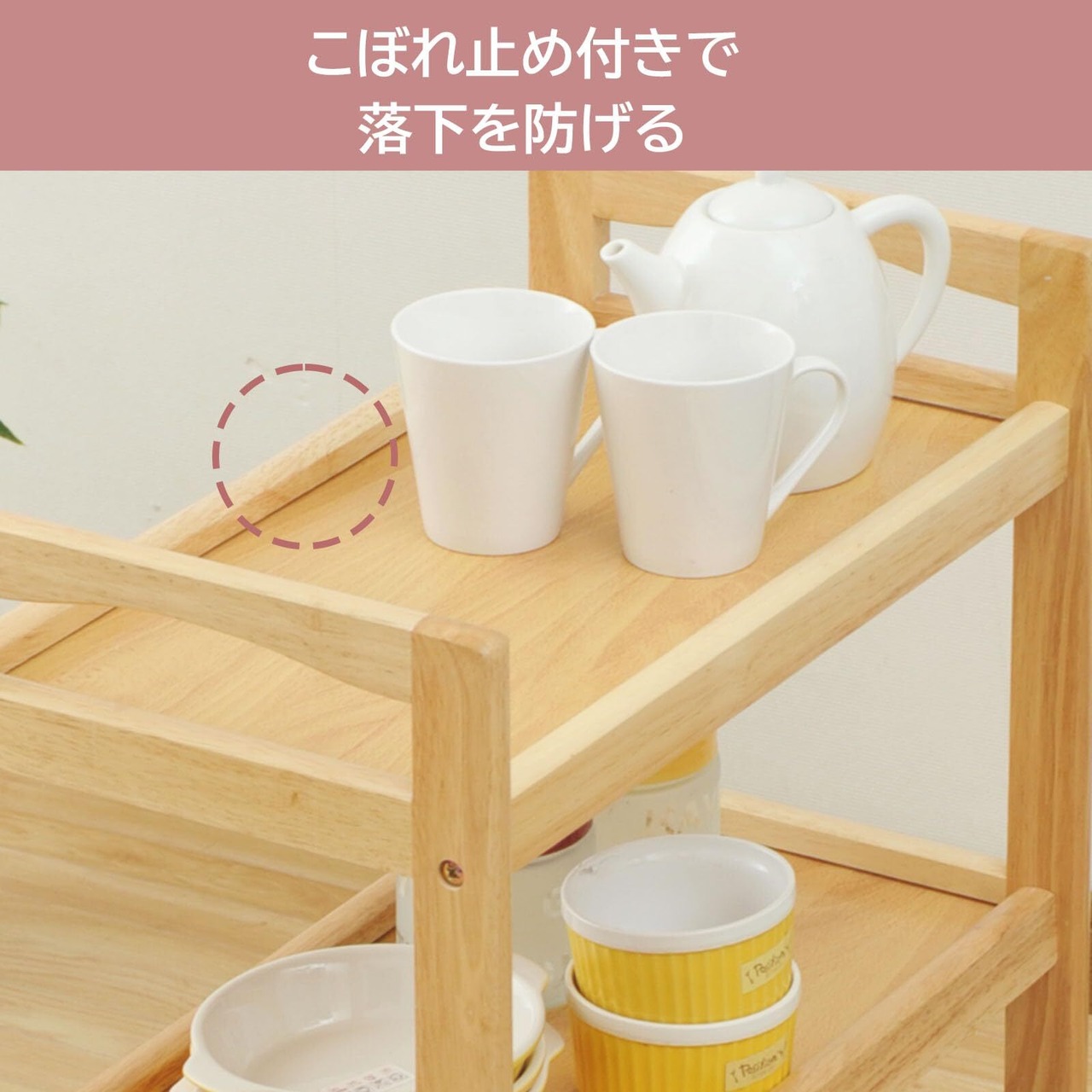 山善(YAMAZEN) ワゴン キッチンワゴン キャスター付き 3段 幅30.5×奥行53.5×高さ72.5cm キッチンカウンター 天然木 組立品 ナチュラル BNN-3M(NA)