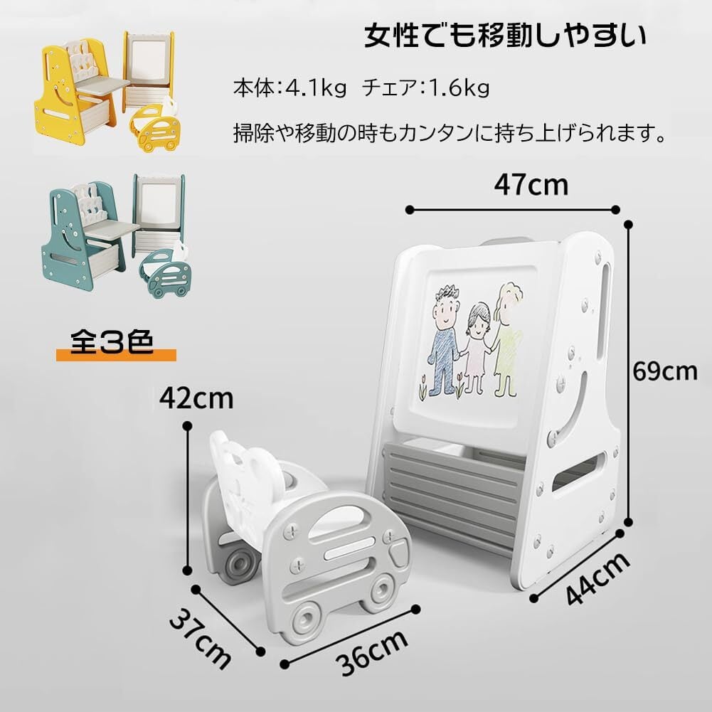 お絵描きボード キッズデスク イーゼル付き 大きい 多機能テーブル&チェア 絵本棚 知育デスク 収納付き おしゃれ 軽量 コンパクト 2way 絵本ラック (ホワイト)