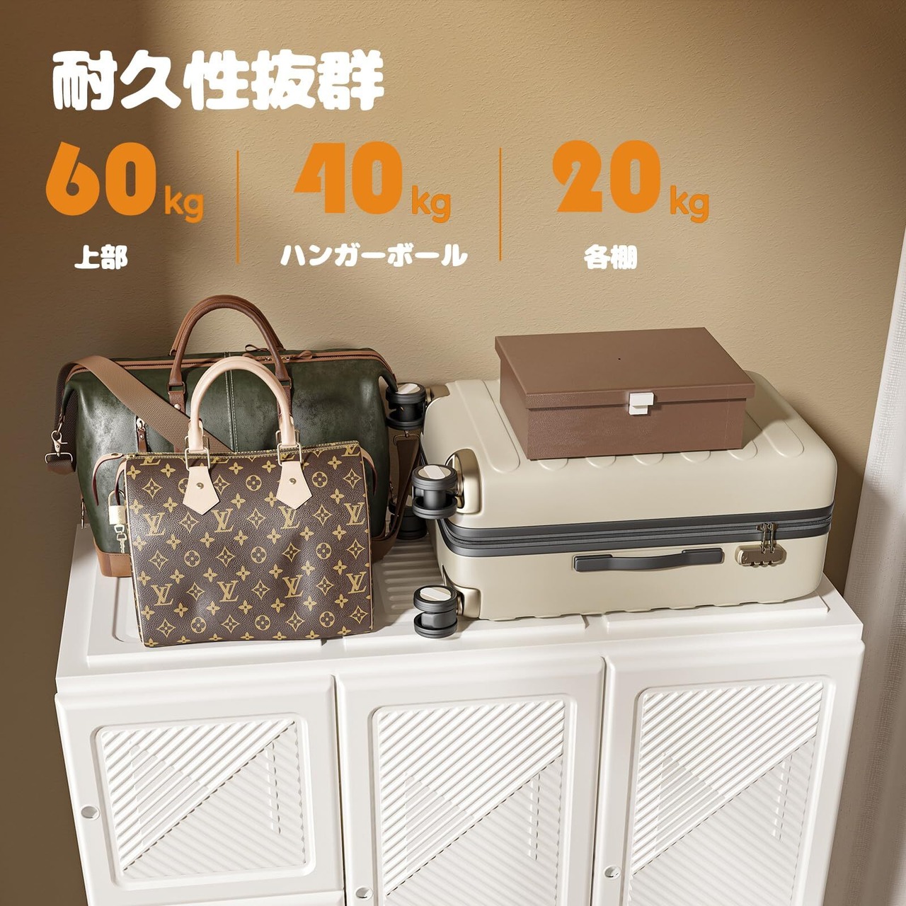【高耐荷重】天板の耐荷重は60キロ、ハンガーと棚板の耐荷重は20キロで、耐久性があります。これにより、自宅の収納と整理のニーズを満たすことができます。