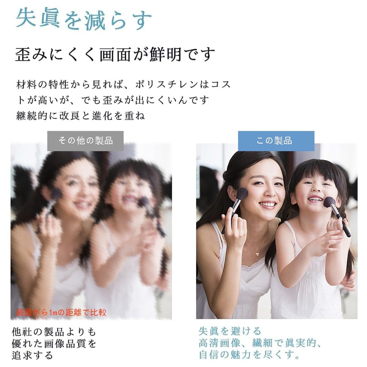 【アクリル素材、大幅歪み軽減】当社の割れない鏡は、厚さ2mmのアクリル素材を使用しており、歪みを大幅に軽減。鏡の裏全体に粘着テープが貼られており、均一に壁に固定でき、凹凸がなく、クリアな映りを実現します。貼る鏡としても、ミラーシートとしても、またお風呂鏡や姿見にも最適です。