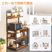 【収納力满点】もうキッチンの整理に悩まされることはないです!上下合わせて5の棚板で巨大な収納力を提供し、上段は小物や調味料の収納に便利で、中段の広々とした大天板は大型の調理器具や家電を置くのに十分な広さを確保しています。下段の可動棚2段も収納スペースを最大限に活用し、収納力が飛躍的にアップします。