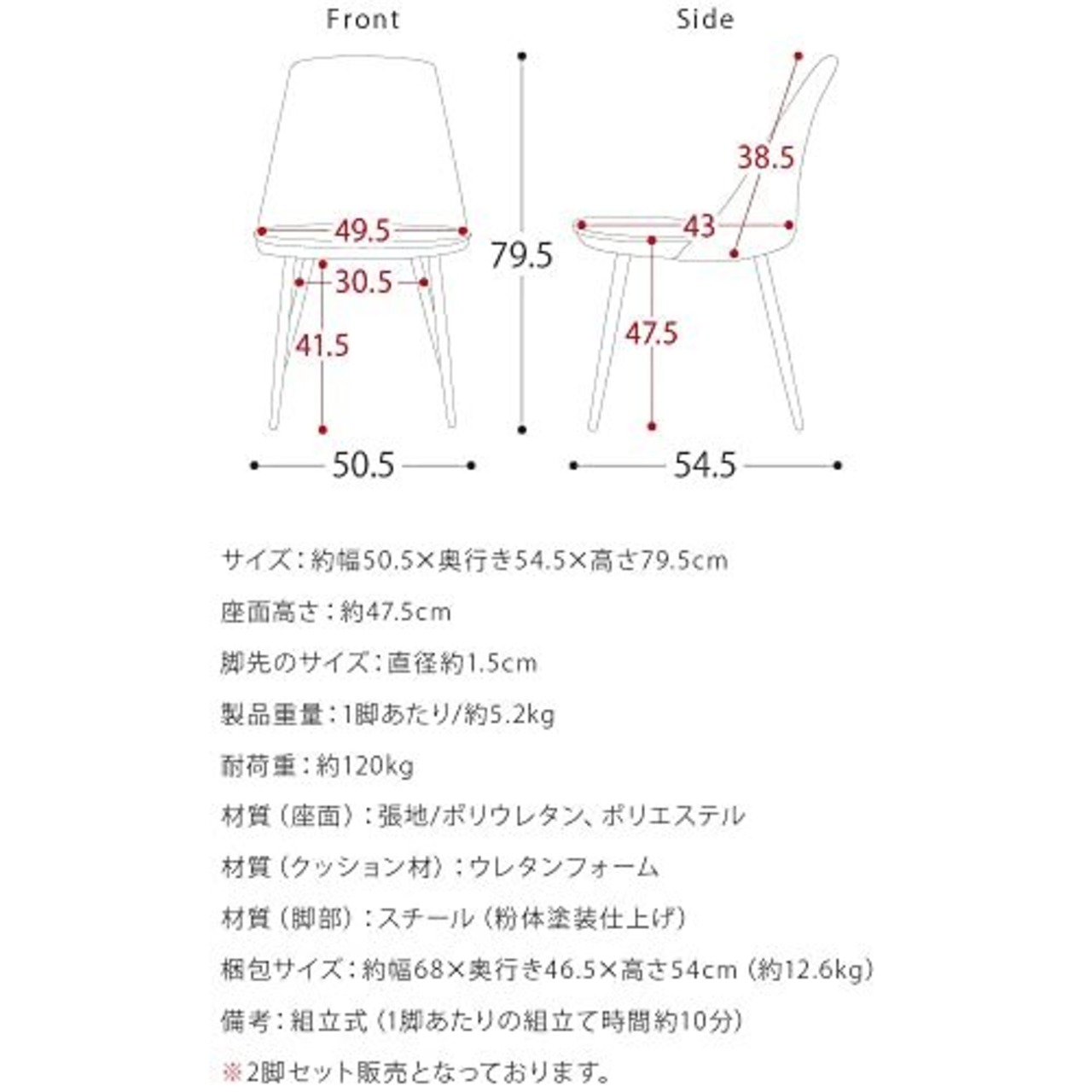 【備考】組立式(1脚あたりの組立て時間約10分)※2脚セット販売となっております。