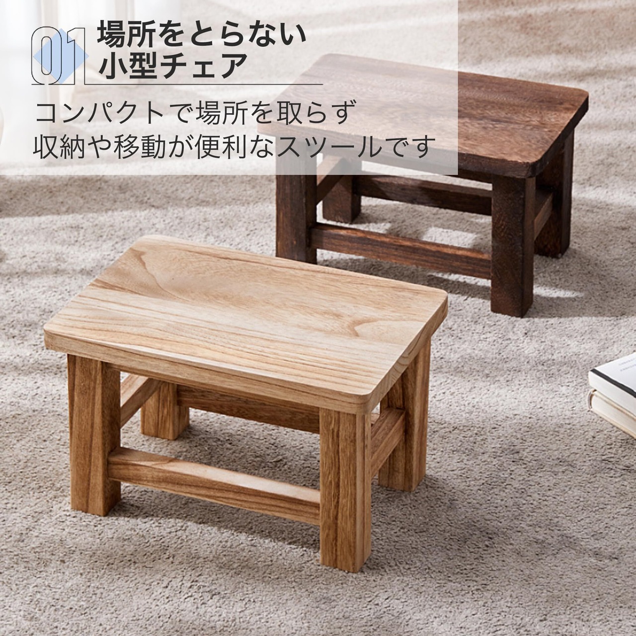 【マルチに活用できる】 リビングやアウトドア、和室など様々なシーンで活用できます。 耐荷重100kgで、大人の方にもご使用いただけるオシャレなミニスツールです。