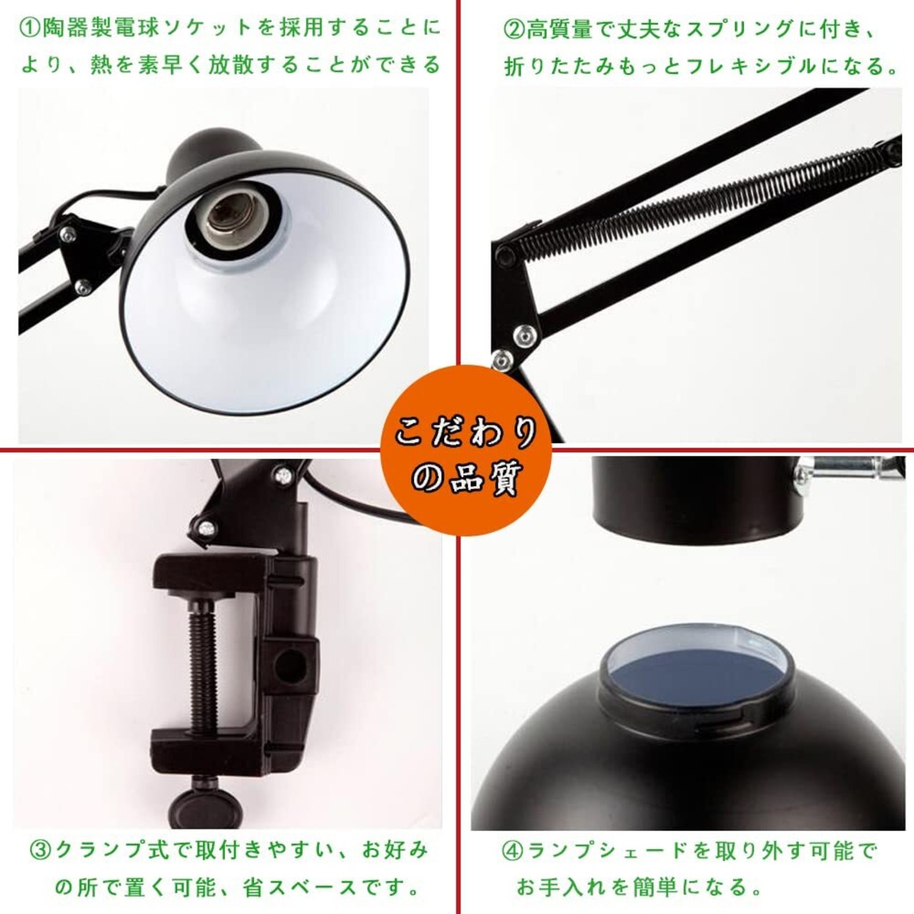 【多関節角度調整・省空間】360°の回転と180°の角度調整ができるシェードと自在に伸縮するアームで、照らしたい場所を自由自在に調整いただけます。省空間なクランプ仕様なデスクライト、固定するにも手軽くて、女性でも簡単に締め付けます。クランプ部分はABS製でしっかり出来上がって、4.5cmまで挟まれます。折りたたみ式の設計より、デスク用ライトをテーブルの側に沿って収納されることができ、空間節約に最適です。