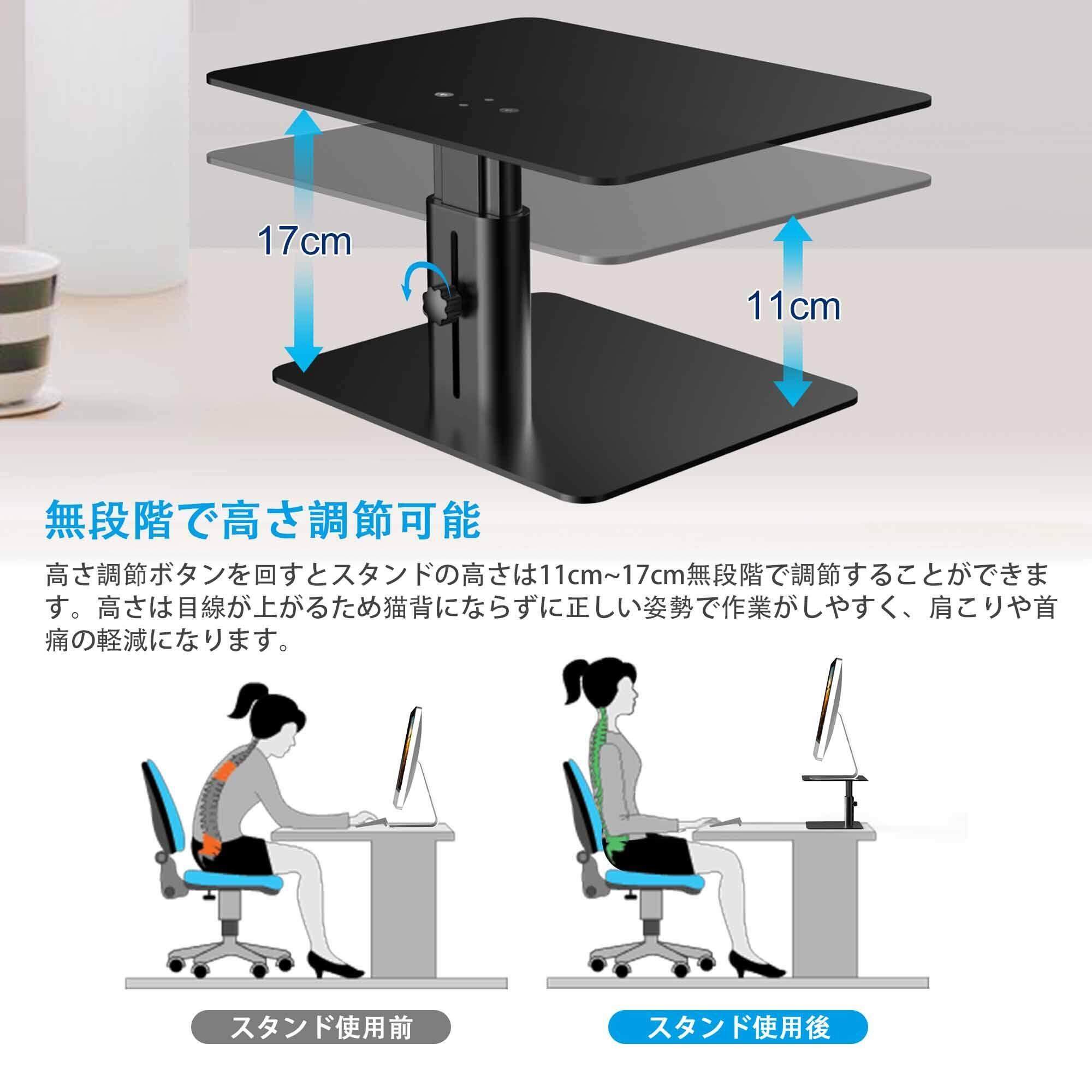 EPN モニター台 卓上 モニタースタンド 金属製 高さ調節 11cm~17cm 耐荷重15kg 安定性 姿勢改善 パソコン台 ブラック (Black)