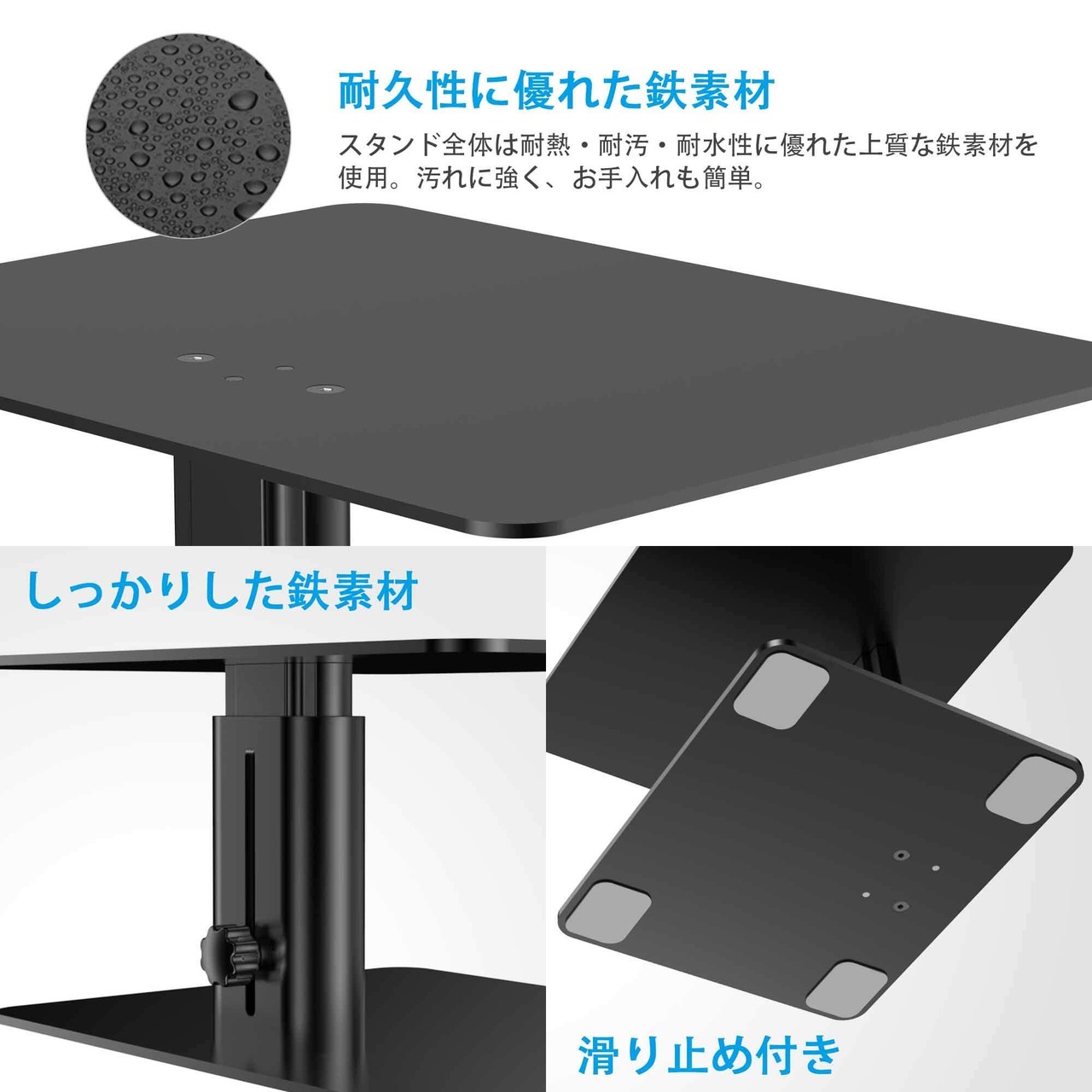 【金属製で安定感抜群】:重量:約2.8kg。モニター台の全体は高級感のありしっかりと安定感のある鉄素材を採用、耐荷重は最大15kgと頑丈な作りで、パソコンのディスプレイだけに適用することではなく、プリンタ台、テレビ台としても最適です。また、モニタースタンドの底面には、デスクが傷ついたり机上台がズレたりすることを防ぐ4つのクッションも付いて安心です。