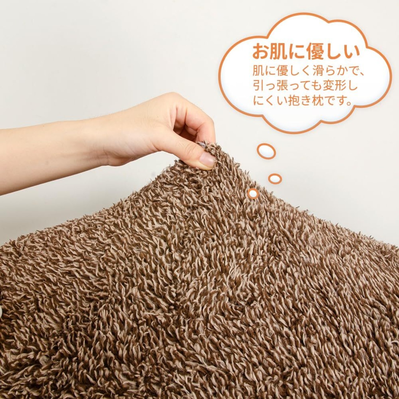 [素材]側地:ポリエステル95% ポリウレタン5% 中綿:マイクロ綿(ポリエステル100%) よく伸びる生地にて作ったカバーに柔らかいマイクロ綿をたっぷり詰め込みました。ずっと触れていたくなるもちもちぬいぐるみです。