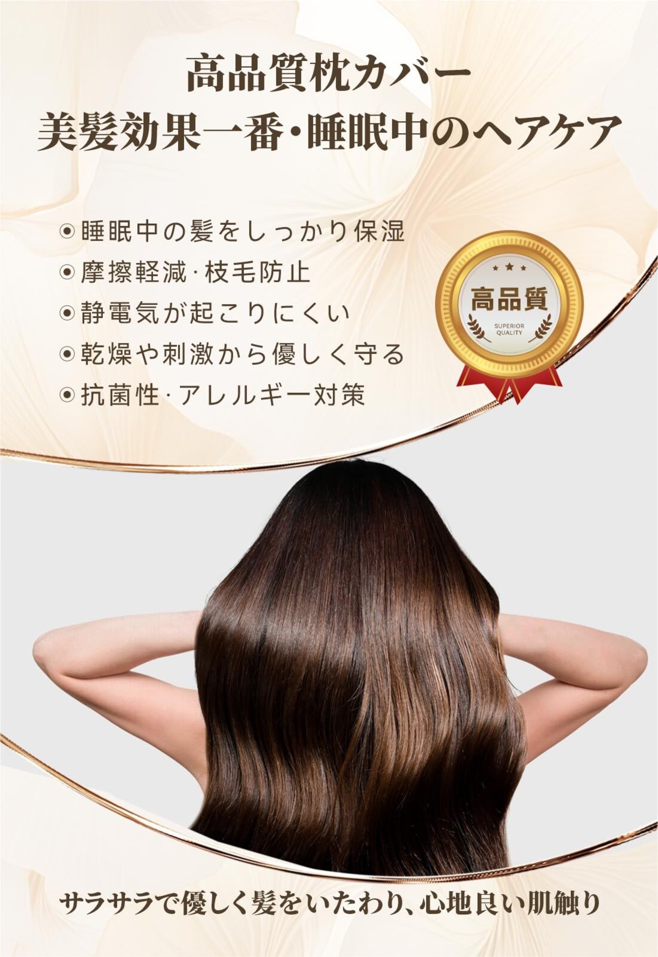 まくらカバー・美容&美髪:Arearessの枕カバーは髪に天然のうるおいを与えます。乾燥や刺激から髪をやさしく守れます!そして、優れたの生地は皮膚に最も近い成分で、肌に刺激を与えることがほとんどなく、敏感肌の方にもご安心に利用できる高品質カバーでございます。