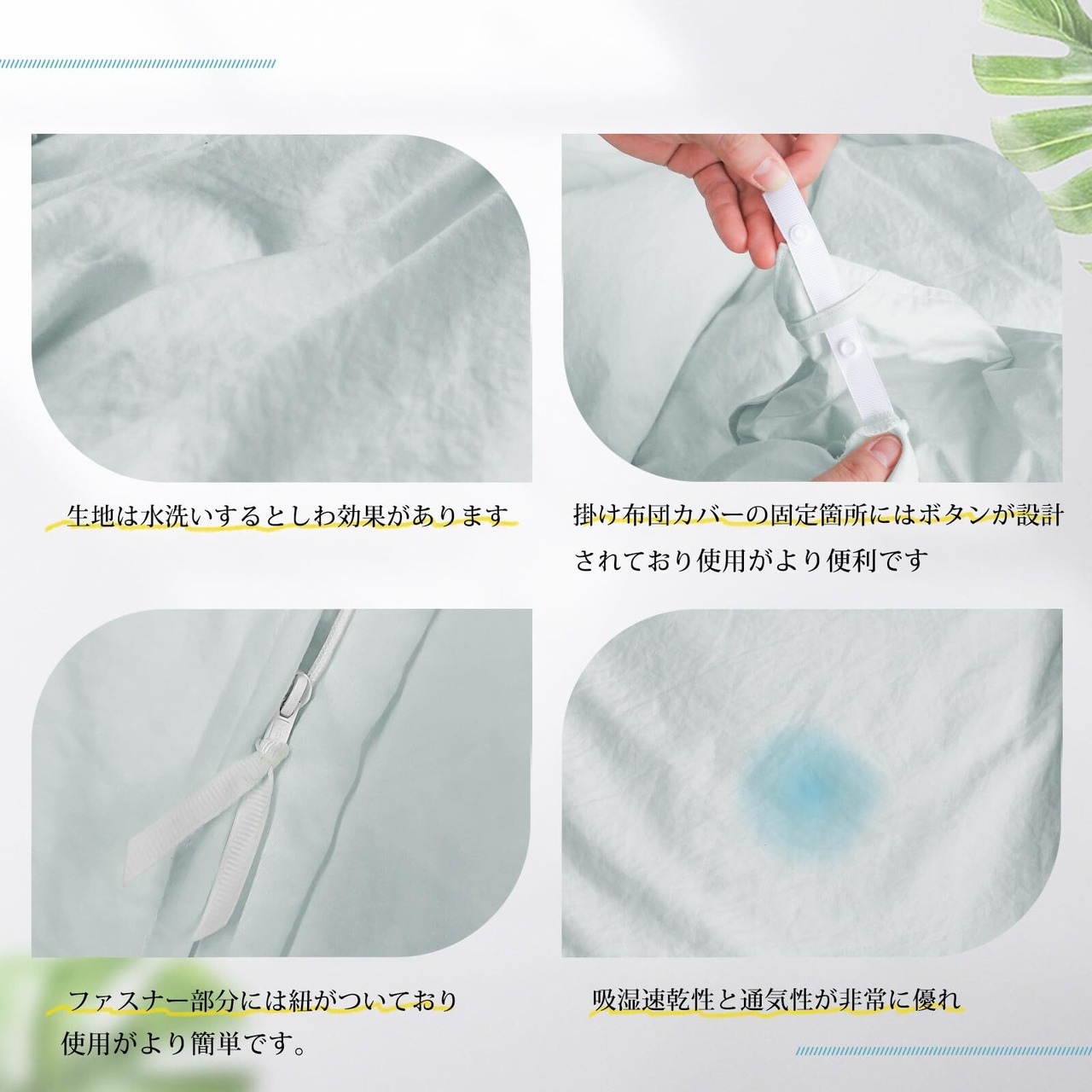 【オールシーズン向け】暑い季節は汗を吸いやすく、寒い季節は保温性に優れています。また通気性もよい、汗をかいても素早く湿気を吸い取り、発散してくれるので、いつでもサラサラとしています。この掛け布団カバーは一年を通じてお使いいただけます。