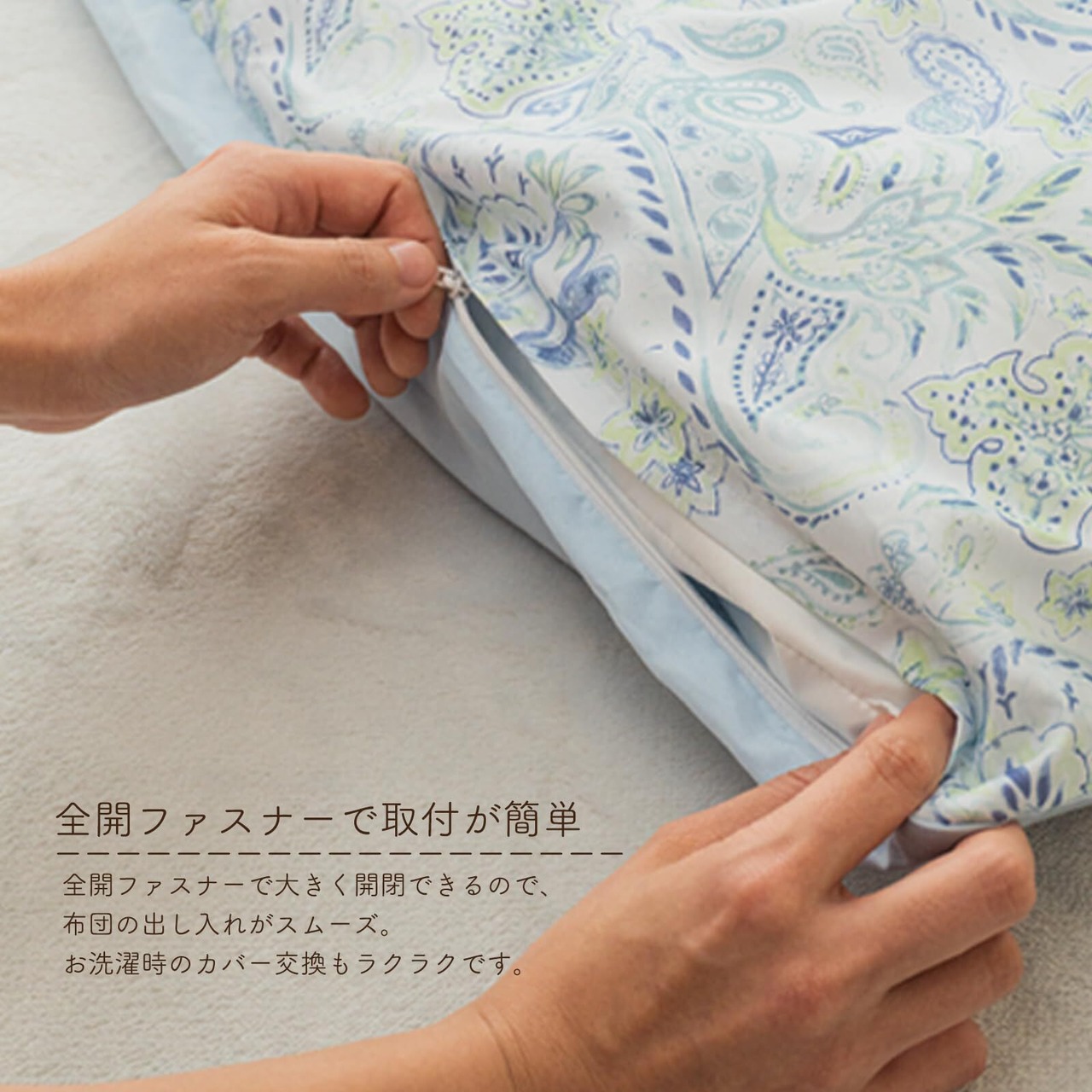 【便利な全開ファスナー】全開ファスナー仕様で、布団の出し入れも楽々な掛けふとんカバーです。