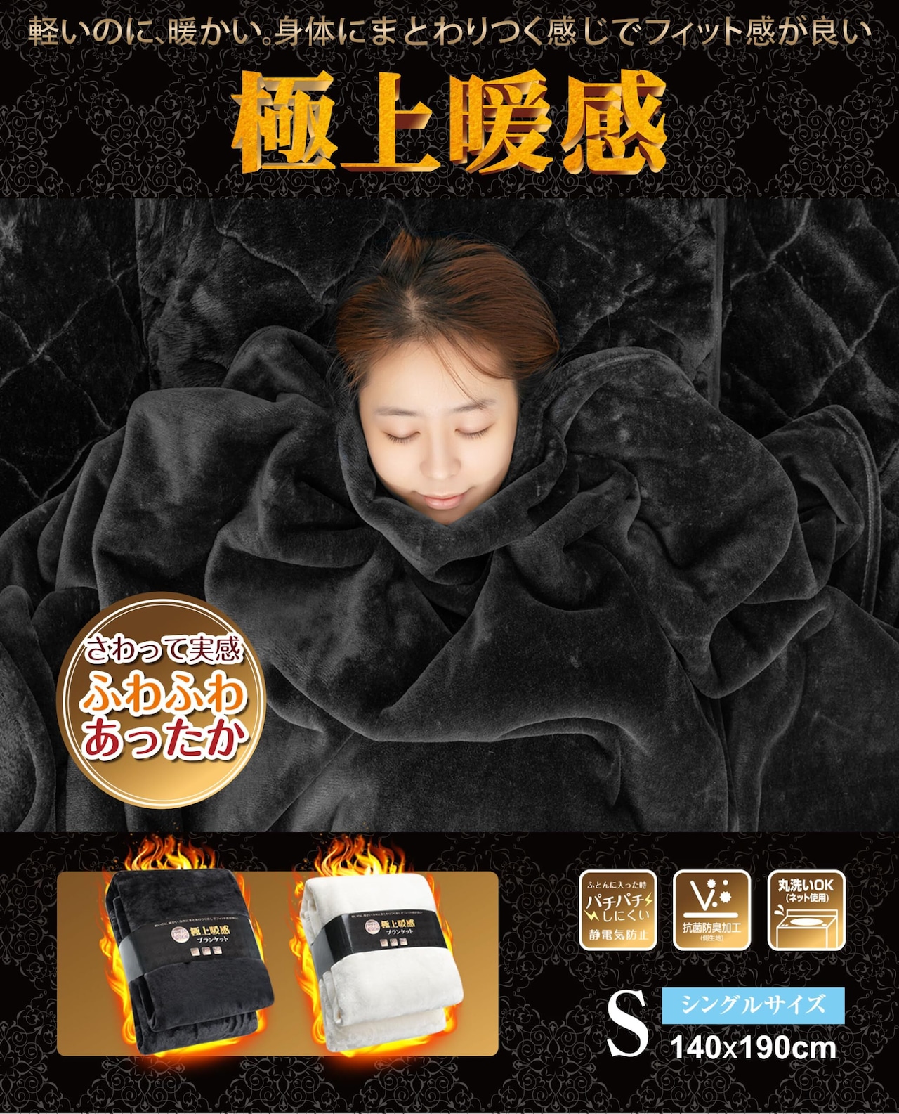 【新着商品】【極上暖感&極上タッチ】ブランケット 夏 毛布 シングル ふわふわ あったか ニューマイヤー CICA保湿 柔らか肌触り なめらか オールシーズン 冷房対策 吸湿発熱 光触媒 抗菌防臭 強力静電防止 軽量 速乾 洗える(ブラック・シングル 140x190cm)