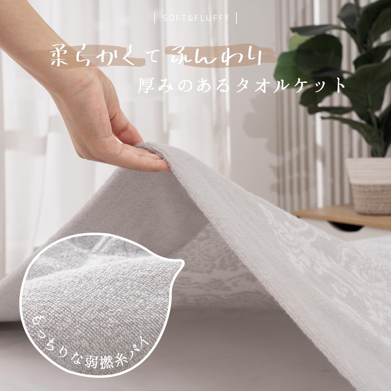 【いつもサラッと快適】吸水性・吸湿性に優れたタオルケットは、汗や湿気を素早くしっかりと吸収してくれます。梅雨のジメジメでも夏のムシムシでも、サラッとしてベタつきにくく、朝までぐっすり眠り、寝起きも爽快です。ほどよい厚みで暑いとは感じてません、癒されるふわっとした肌触りが気持ちいいです。