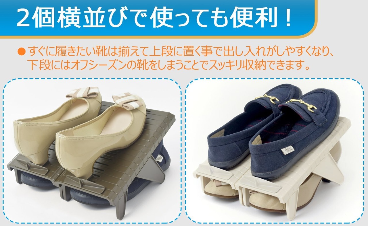 およそ2分の1のスペースで収納できるから、下駄箱がスッキリ