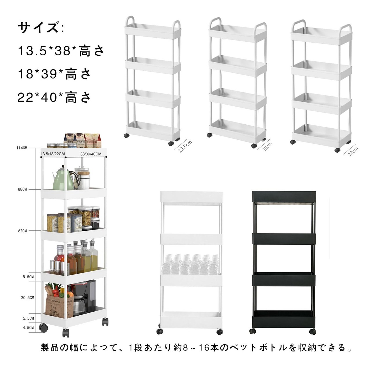 【在庫セール】SVOHZAV キッチンワゴン 隙間収納 キャスター付き 13cm 18cm 22cm ペットボトルラック 冷蔵庫横 洗面所 収納 隙間ラック 3段 4段 スリムワゴン 細い棚 調味料棚 (18cm-[四段式] ホワイト)