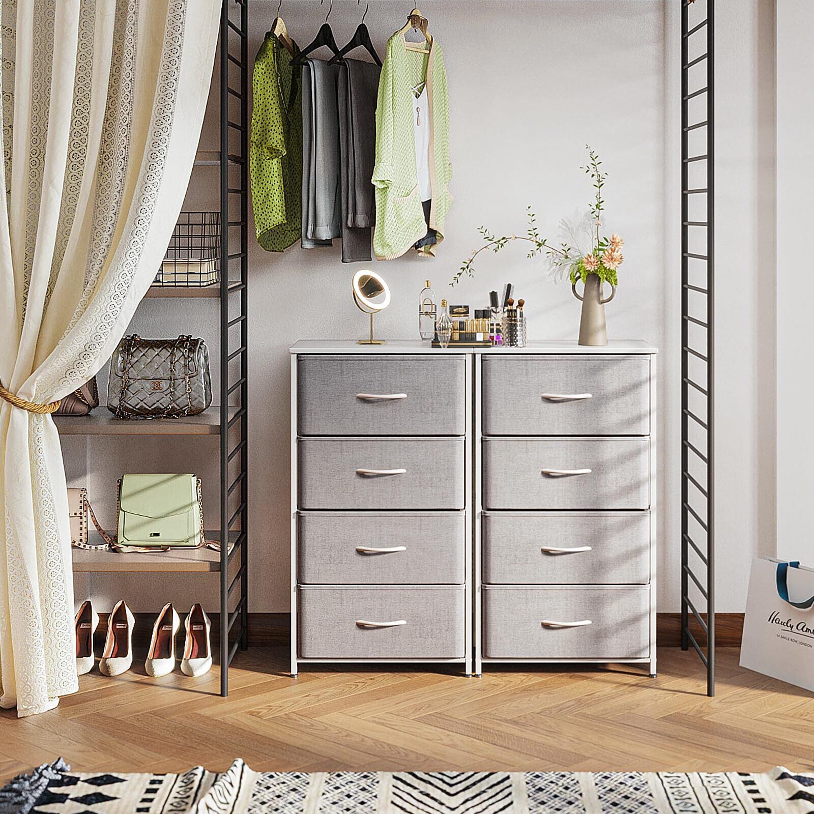 KKL チェスト タンス 衣類収納 収納ケース 引き出し リビング収納 布製 引き出し 衣装ケース 箪笥 転倒防止 低ホルム 安定感 4段 【幅40×奥行30×高さ80cm】 ホワイト