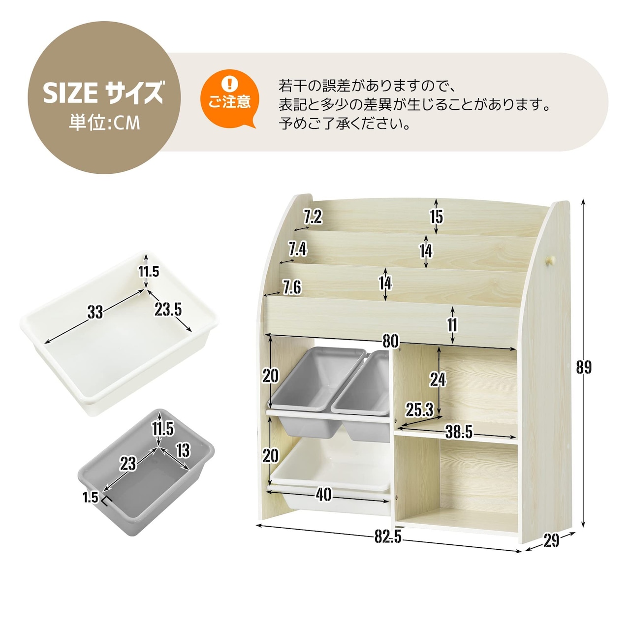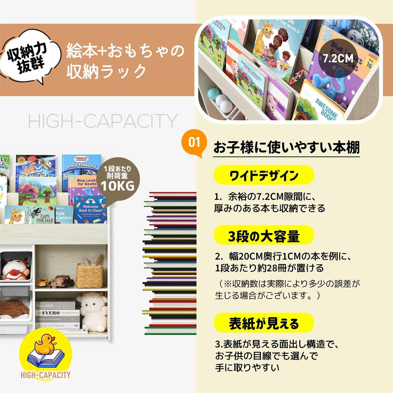 【お片付けが身に付く知育家具】おもちゃを入れるだけでお片付け完了。絵本も立ててしまえてスッキリ。 【自分で考えて工夫しながらお片付け】「色で分ける?」、「種類で分ける?」。使いやすいように工夫しながら楽しく収納。 【バスケットごと移動OK】リビングから子供部屋へ。おもちゃを入れたバスケットごと移動できる。 【らくらく整理整頓】細々としたおもちゃもこんなにスッキリ。どんどん入れるだけでお部屋が片付く。 【ご注意・付属品】简単な組み立て品 日本語の組立マニュアル付属