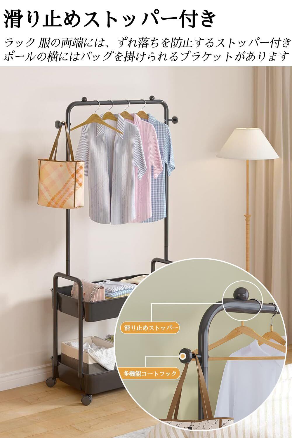 【収納性抜群】 シンプル洋服ラックと収納を組み合わせた特別に設計された2層収納ラック。ポールには両側にアイテムを掛けるためのブラケットが装備されており、靴、箱、おもちゃ、折りたたんだ服、バッグ、その他のアイテム用の追加の収納スペースを提供します。ローリングアイテムもよりよく保管できます。