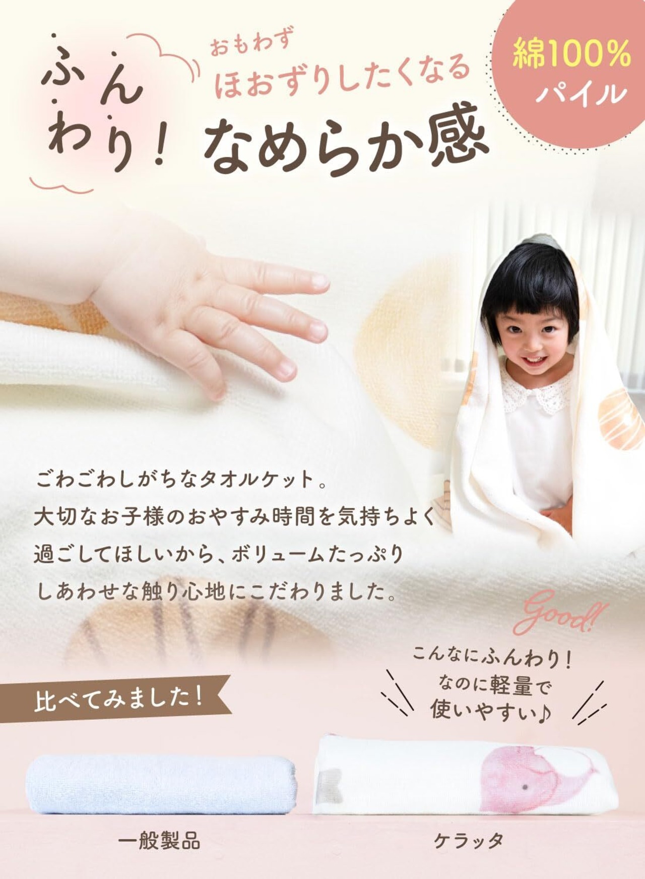 【触ってほしい!こだわりのふんわり感】お子さまが使うものだから、思わずほおずりしたくなるような気持ちの良い~触り心地にこだわりました。ふんわりなのに軽くて使いやすい◎