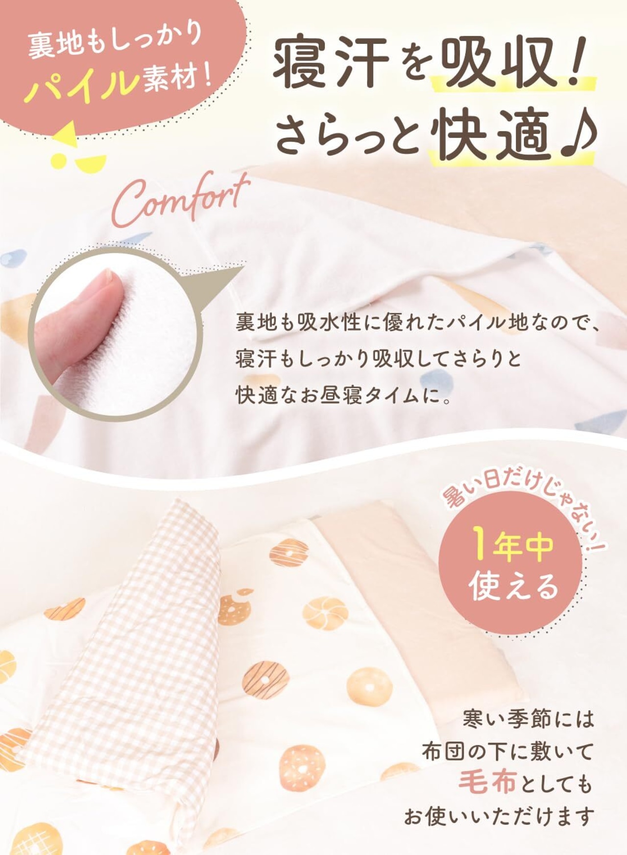 大人気のイブルお昼寝布団シリーズからふんわり気持ちいい~タオルケットが登場!パイルで寝汗をしっかり吸収するので暑い季節のお昼寝もさらりと快適ネームタグ付きで保育園にもぴったりです◎