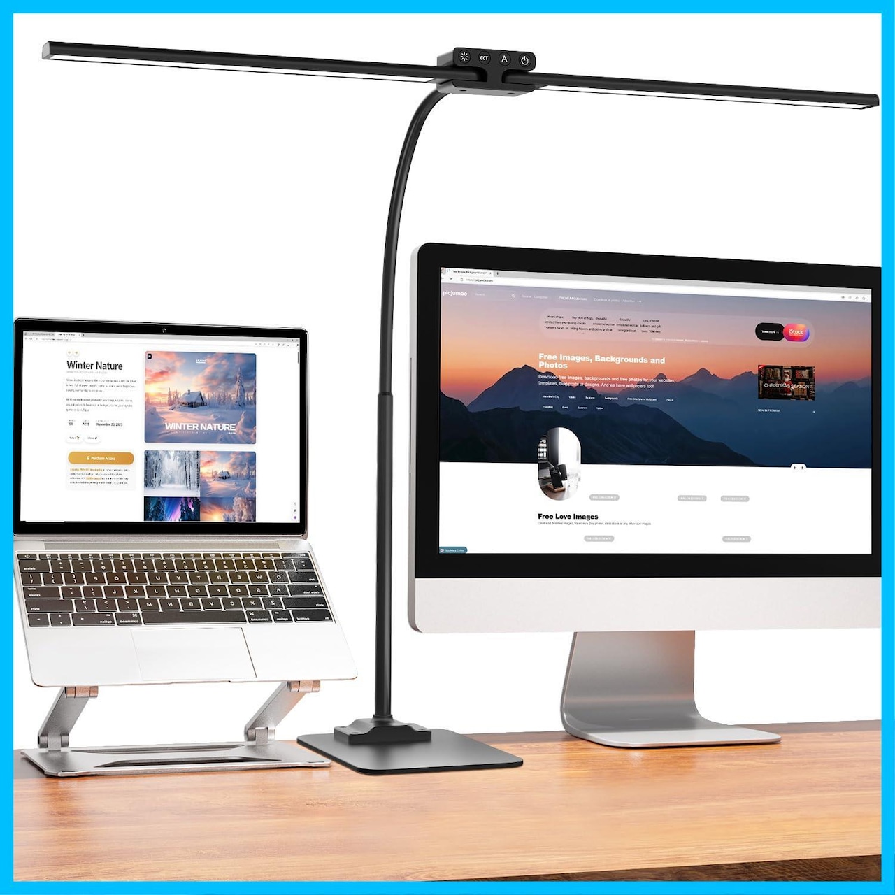 EppieBasic デスクライト 24Wスタンドライト ダブルライトバーの電気スタンド スタンド式の卓上ライト 1200lumen明るい 強力 最強 無段階調光 4段階の色温度 30分のタイマー 自動調光 メモリー機能 仕事 勉強 試験 作業