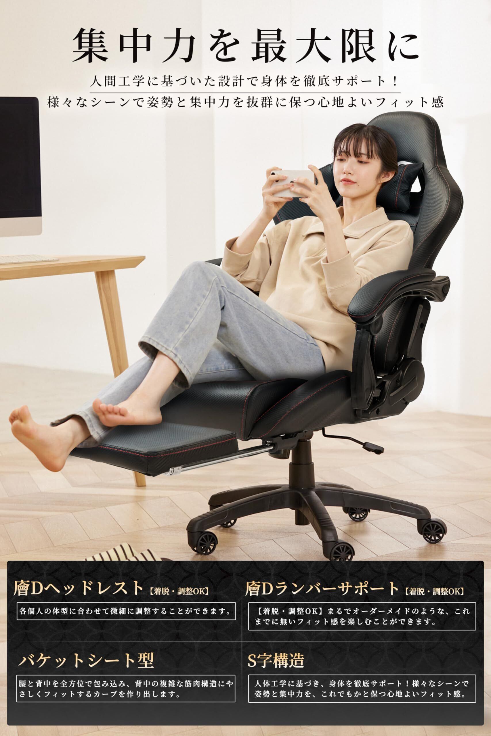 【快適な座り心地】 人間工学に基づいた設計で、ヘッドレストとランバーサポートが背骨の自然なS字カーブを支え、腰への負担を軽減し、疲れない。厚みのある背もたれと座面クッションが脊髄と腰を優しくサポートし、快適な座り心地を提供します。ロッキング機能により、リラックスするための最適な角度を見つけられます。