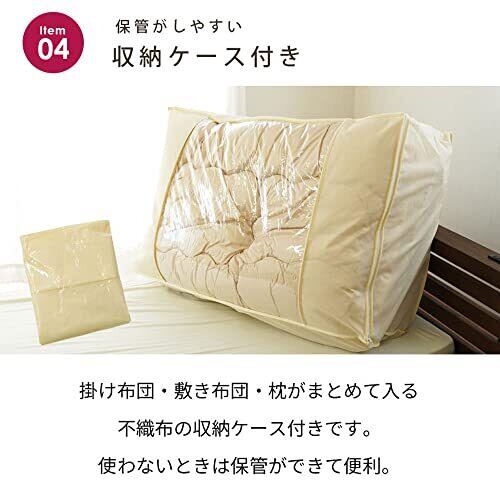 新生活・一人暮らし・来客用にも!掛け布団・敷き布団・枕が入った基本のお布団3点+収納ケースも付いた4点セット。羽毛や羊毛特有のニオイが苦手な方にもオススメの合繊ポリエステルわた入り。敷き布団は固綿入りで底付き感も軽減、軽量タイプなので取り扱いラクラク枕もポリエステルわた入りのスタンダードな枕です。掛け布団・枕はお洗濯もOK!
