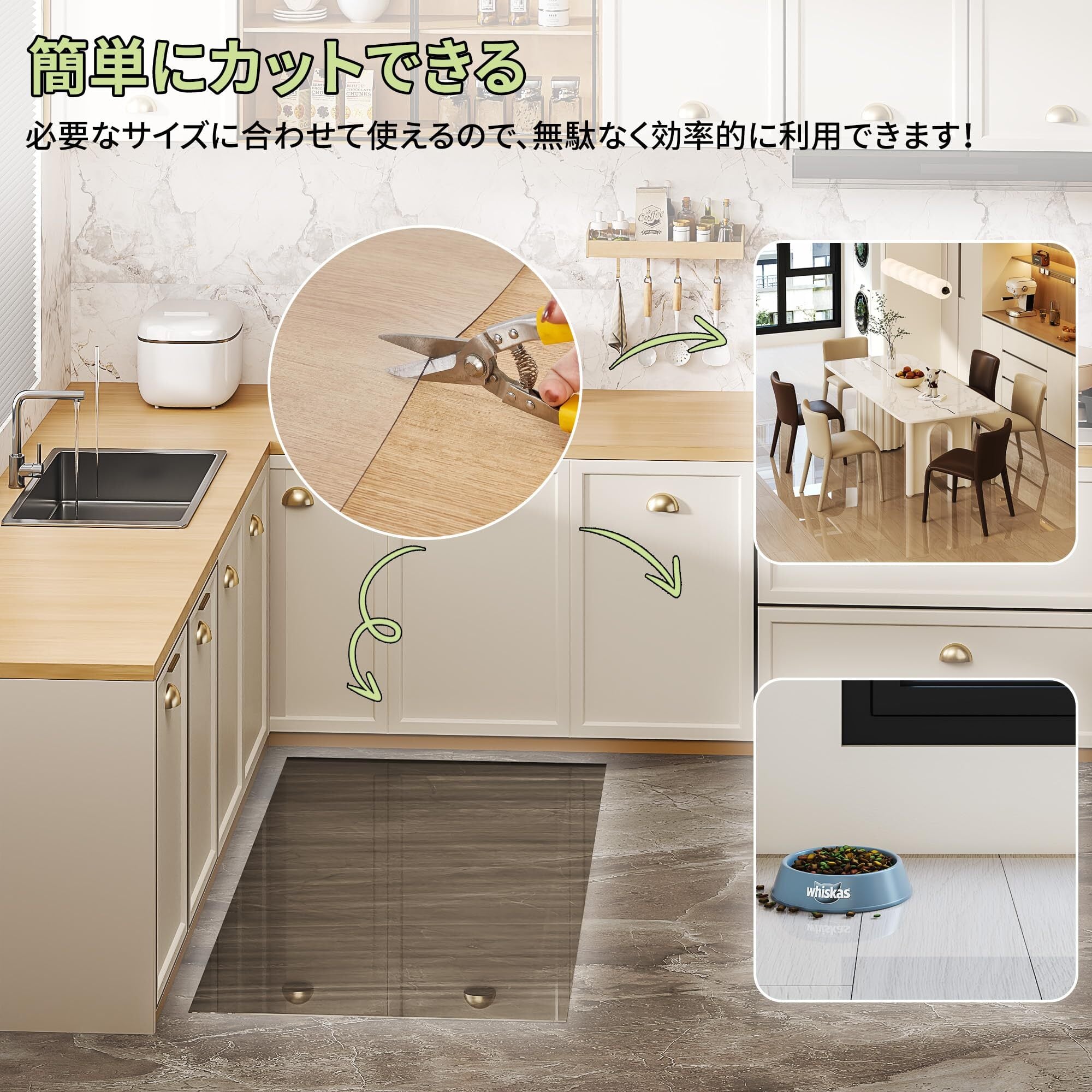 このフロアマットはインテリアを引き立てる透明なデザインで、どんな部屋にもマッチします。床の美しさを損なわず、シンプルで洗練された印象を与えます。