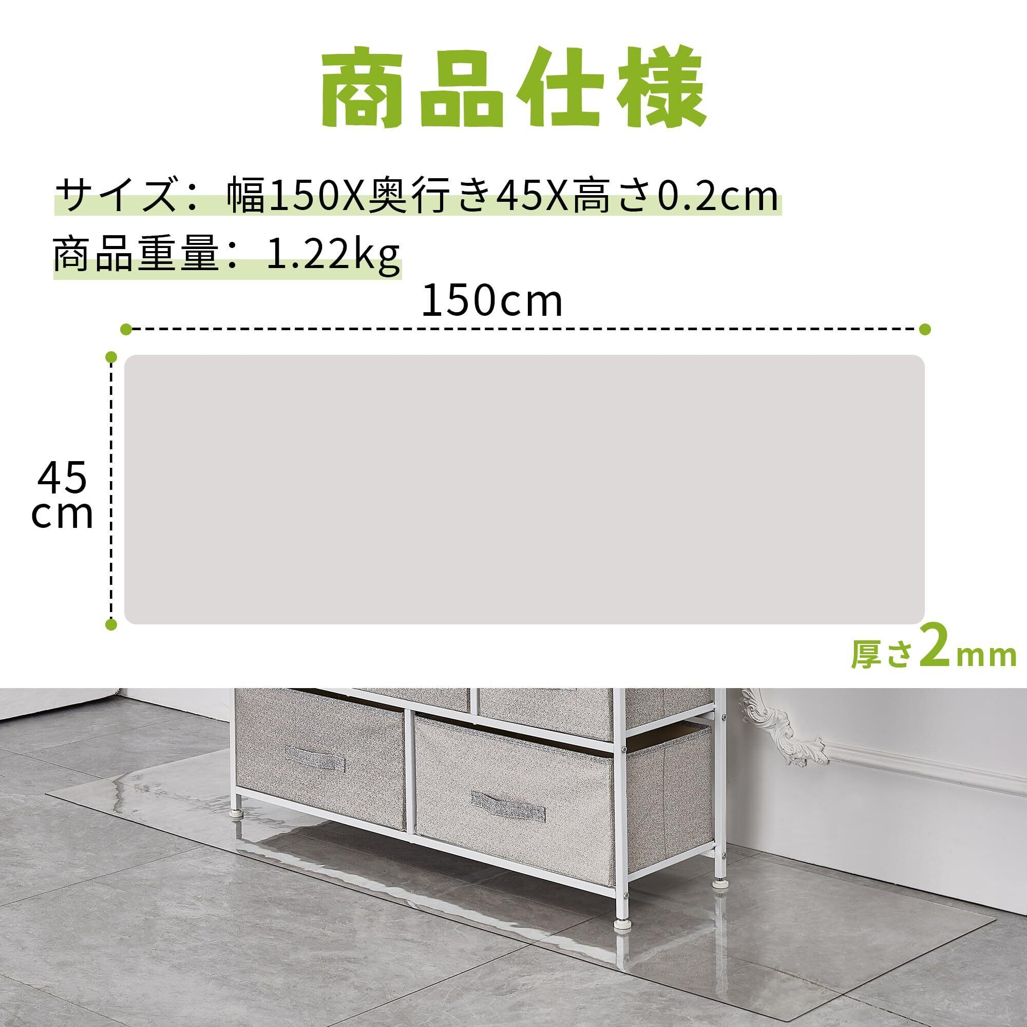 VECELO 床保護マット チェアマット 幅150X奥行き45cm 吸音 透明 防水 家具保護 凹み防止 防カビ 床傷防止マット 特大サイズ 滑り止め 床キズ防止 床暖房対応 無味無臭 お手入れ簡単 冷蔵庫マット フロアマット