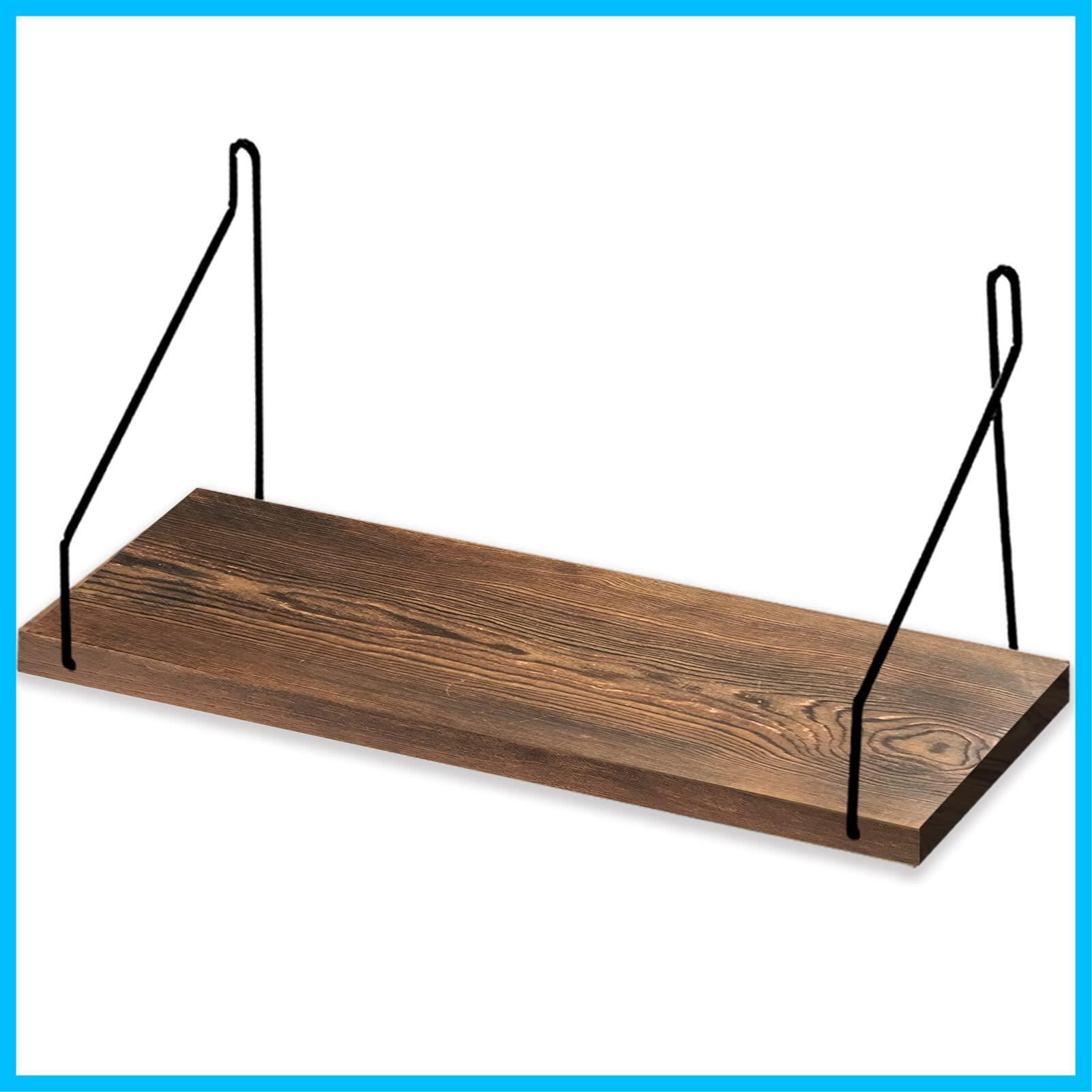ウォールシェルフ 天然木 壁掛け棚 取付簡単 本棚 DIY 木製 飾り棚 シンプル ワイヤー付け 収納便利 (ブラウン, 40cm)