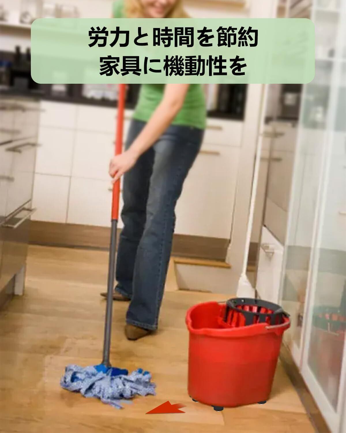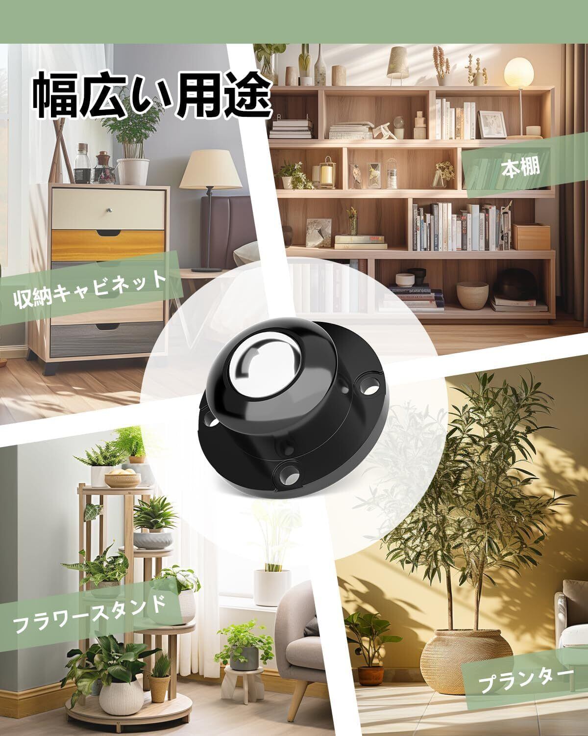 【家具のためのロープロファイルデザイン】当社のキャスターローラーのコンパクトなデザインは、美観を損なうことなく、小型家具や家電製品の底面に簡単に取り付けることができます。コーヒーテーブル、キャビネット、本棚、ナイトテーブル、プランター、空気清浄機など、家具や家電製品の足や脚に取り付けることができます。ヒント このキャスターは滑らかで硬い表面でのみ使用でき、木製の表面には跡が残ることがあります。
