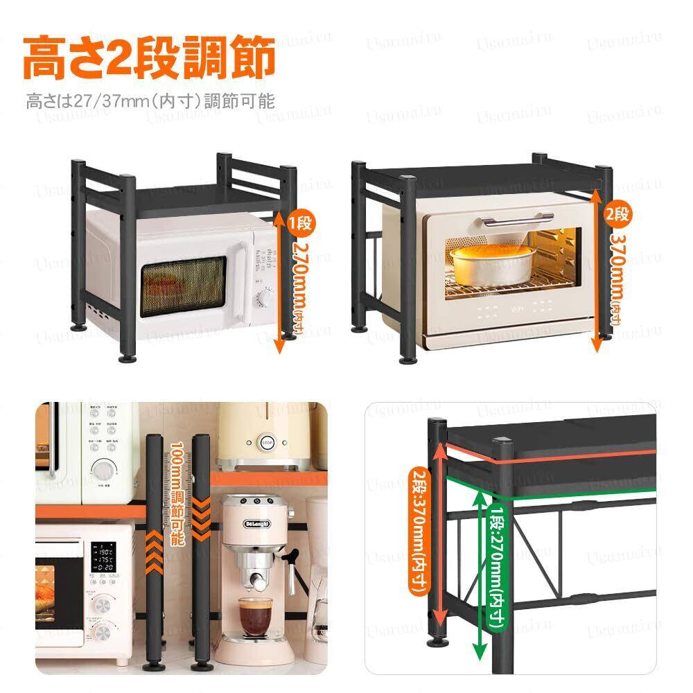 レンジ上ラック トースター レンジ伸縮式 幅(39-65cm) 上下調節可能 棚板高さ調節 耐荷重75kg シンク上キッチン収納ラック ガタツキ防止 フック6個付き キッチン収納 省スペース 組立簡単 多用途(ブラック)