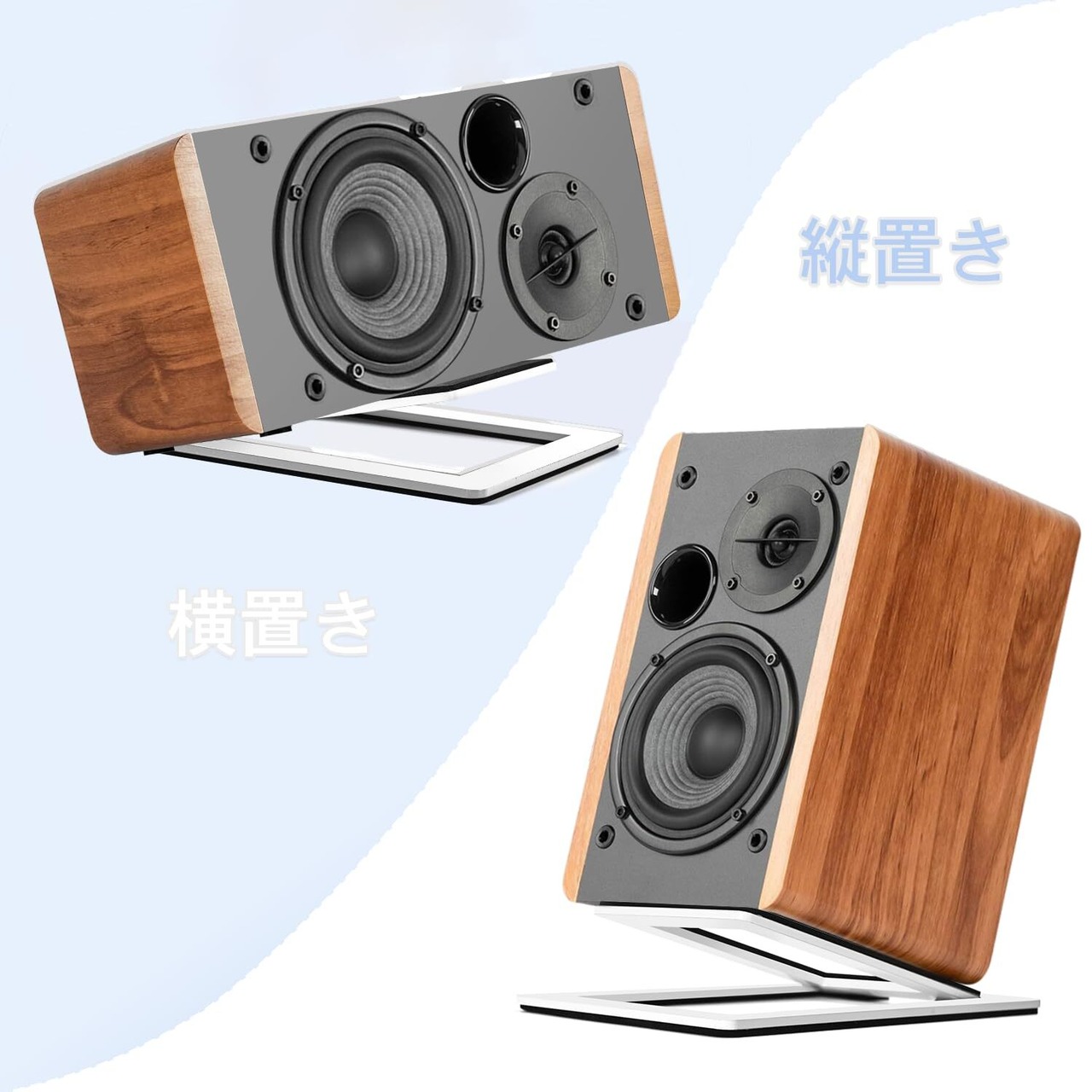 スピーカースタンド 卓上 ペア スピーカー台 共振軽減 デスクトップスピーカー用スタンド メタルデスクスピーカースタンド PCスピーカー ゲームスピーカー 小型デスクトップスピーカースタンド 斜め スタジオスピーカー用 スタンド 2台1組 (ホワイト)