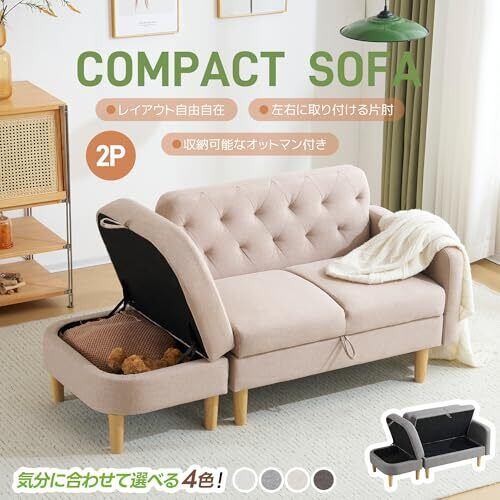 商品仕様 素材:クッション材:ウレタンフォーム、ウェービングベルト、シリコンフィル 張り材:ポリエステル 構造部材:木材 脚:ブナ カラー:ダークブルー、ライトグレー、ベージュ サイズ:二人掛けソファー:101*72*82cm(肘掛け、木脚を含み) オットマン:48*72*42cm(木脚を含み) 重量(N*W):32KGS 重量(G*W):30.5 KGS サイズ:92*71*52cm 組立品/完成品:組立品(肘掛け、脚のみ) おすすめのポイント: 1. たくさん収納できるソファーとオットマン 2. 背部までスッキリとした外観。 3. 取り外し可能の木脚付き、脚なしで利用可能 4. 左右に取り付けられる肘掛 5. 座席は弾力性、座り心地に優れた高品質のスポンジを採用 6. 自由自在に組み合わせ たくさん収納収納スペース付き ソファー,オットマンとも収納スペースついています。布団、オモチャなどの生活用品を簡単に収納できます。肘掛けにも収納袋付き、雑誌、スマホやリモコンなどの小物を収納できます。ワンルームのような狭い部屋の収納空間は大幅に上昇します。 ブナ無垢材の木脚付き、脚なしで利用可能 取り外し可能なブナ材製の木脚付き、女子一人でも簡単に組み立てられます。脚なしでも利用可能なので、ご都合によりご利用いただけます。 左右側とも取り付けるアームレスト 左右どちら側も肘掛を固定できる位置を設けますので左右どちら側も肘掛けを取り付けられます。 座り心はよい座席 座席は高品質のスポンジを採用され、弾力性、座り心に優れています。ちょうどいい硬めで安定性もあります。長く座ってもお体の負担になりません。座席の張地は100%ポリエステルなので柔らかくて肌に優しいです。毛玉もなりにきぃです。 高さ15㎝の木脚付き 木脚の長さは15㎝なのでほとんどのロボット掃除機は対応できます。ソファー座面下の掃除は楽です。木脚なしで利用の場合には、床から1.5㎝の高さです。 自由自在に組み合わせ セパレート式のオットマンなのでレイアウトを変更したい場合にはオットマンを移動だけで完成。 ご注意: ※お客様組み立て品となります。 ※本商品の組み立てやご使用に際しては、乱暴に扱いますと破损やケガの原因となりますので、丁寧にお取り扱いください。 ※商品デザインは、品质に差し支えない程度に、予告なく変更する場合があります。 ※新しく入荷した商品は今まで贩売していた商品と色差がある場合がございます。 ※商品のデザインが写真と違う場合がございますが品質上の問題なく使えますのでご了承下さい。 ※必ず水平で、安定した場所に設置してください。