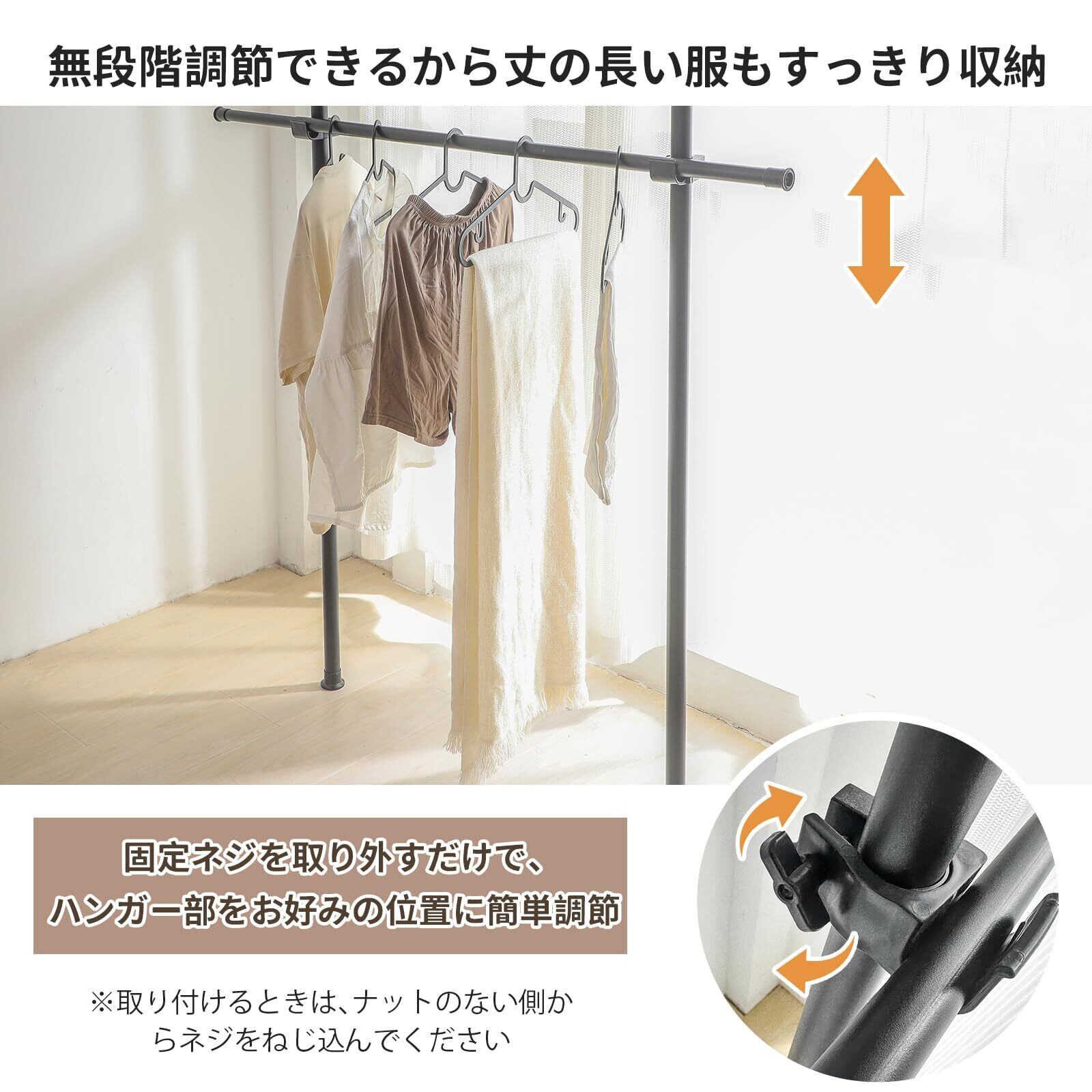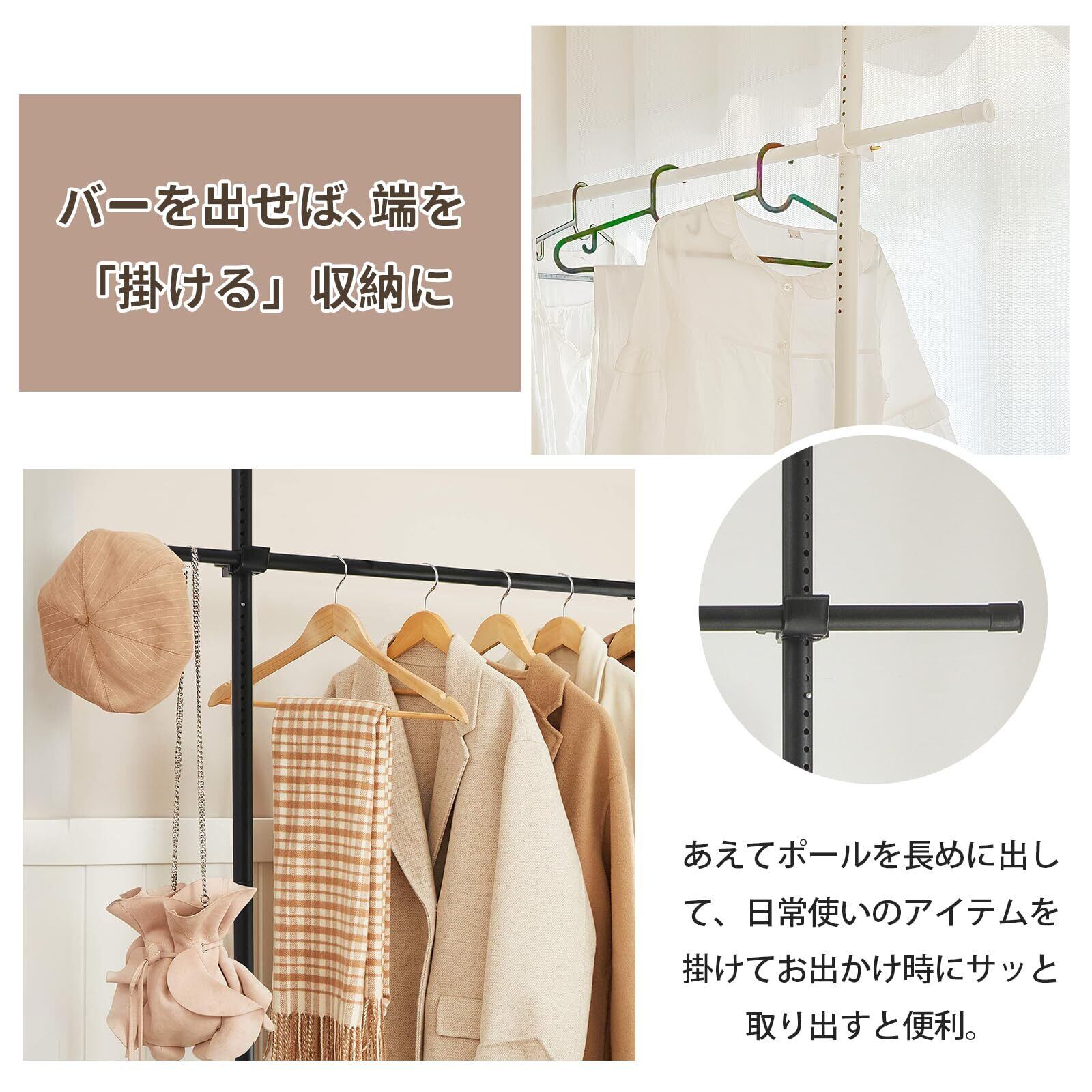 【工具不要組立かんたん】上下に突っ張るだけで簡単に設置ができるハンガーラックです。シンプルなデザインで場所も選ばず、簡単に収納スペースを拡張できるので1つ持っていると重宝します。溢れる服を何とかしたい方や、一人暮らしの方にもおすすめです。黒と白の2色展開なので、お部屋の雰囲気に合わせて選ぶこともおすすめです。